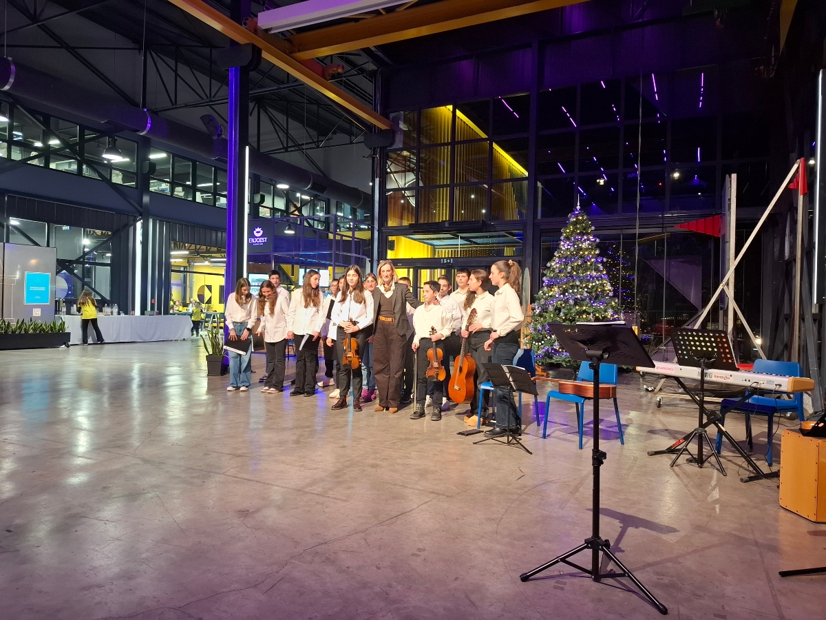 Μέσα σε κλίμα χαράς και συγκίνησης, ο Όμιλος Μουσικής Τέχνης του Προτύπου Γυμνασίου Λάρισας συμμετείχε στη χριστουγεννιάτικη εκδήλωση που διοργανώθηκε από το Πάρκο Καινοτομίας JOISTτην Πέμπτη 18 Δεκεμβρίου το απόγευμα.