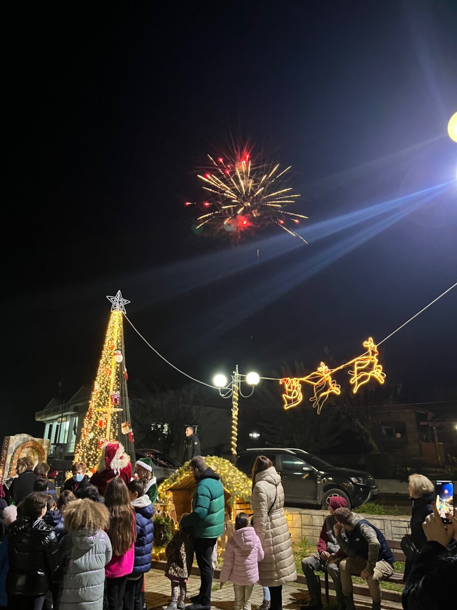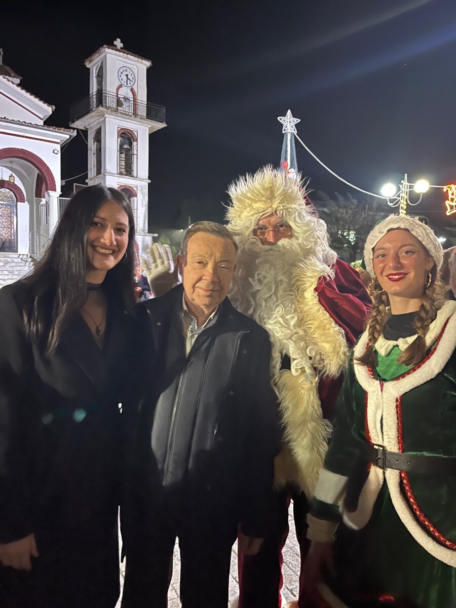 Στην παρέα τους ήρθε και ο πανύψηλος Άγιος Βασίλης της γιορτής, μαζί με το Ξωτικό του Δάσους, αφού άφησαν προς στιγμή την θαλπωρή της ειδικά διαμορφωμένης φιλόξενης καλύβας τους στην Πλατεία του χωριού με τους μικρούς τους φίλους.