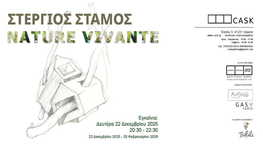 Η CASK, με ιδιαίτερη χαρά, σας καλεί στα εγκαίνια της έκθεσης του Στέργιου Στάμου, NATURE VIVANTE, τη Δευτέρα, 22 Δεκεμβρίου 2025.