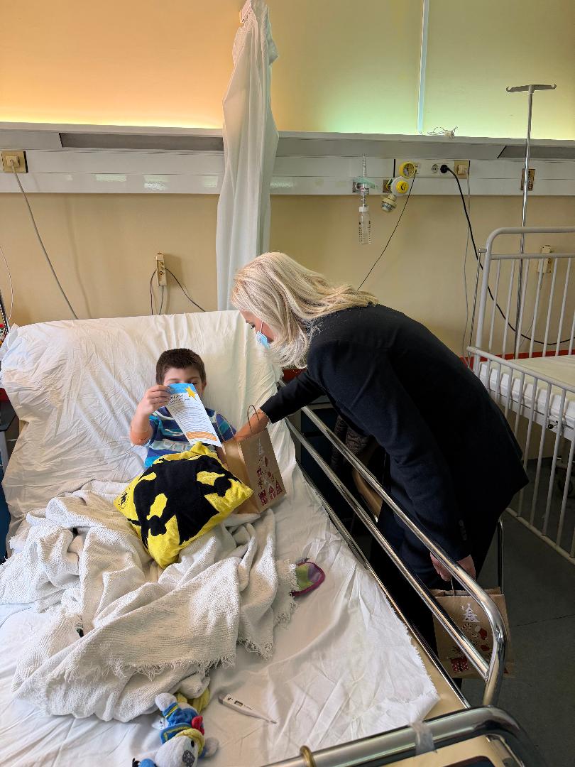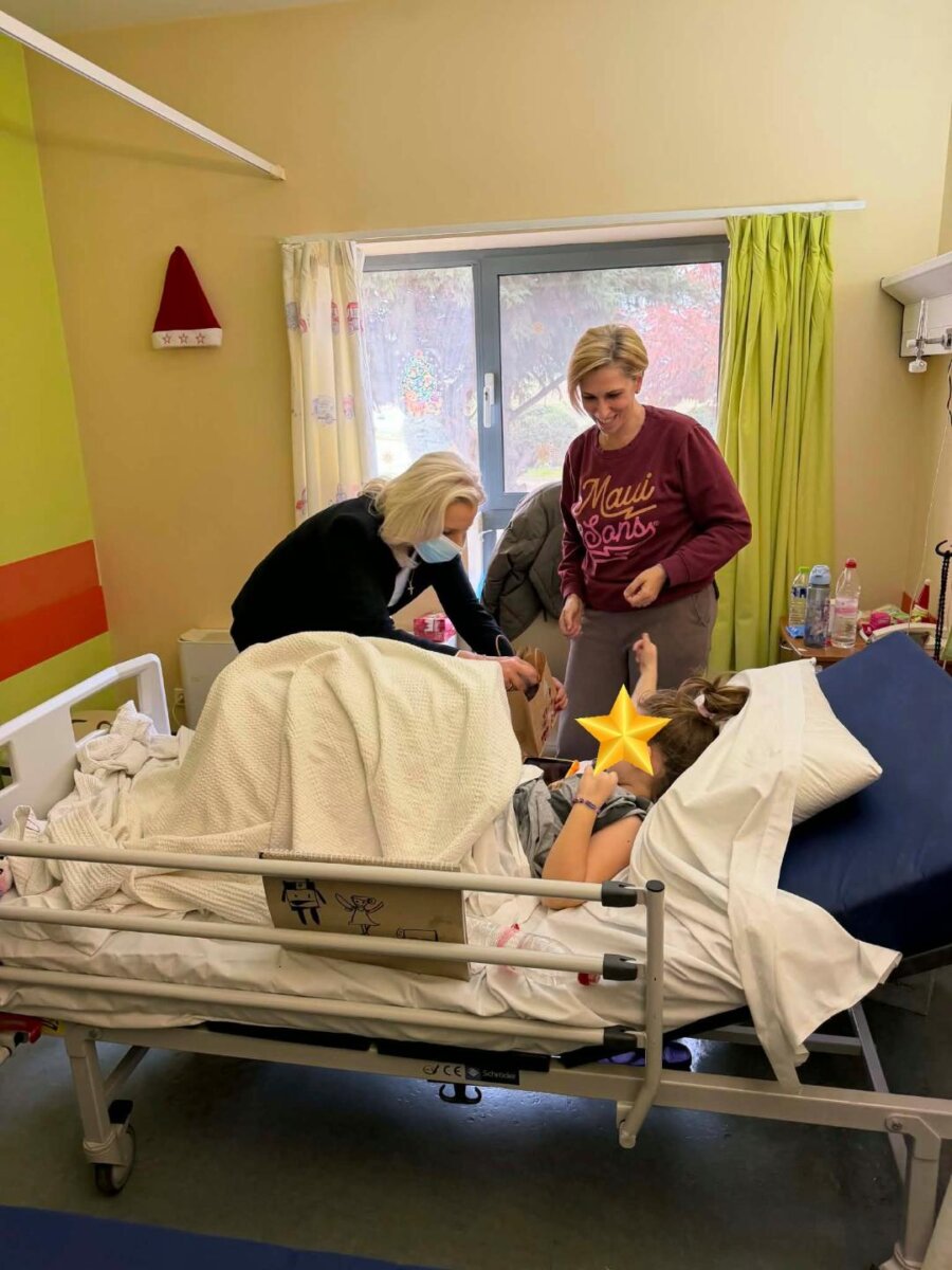 Κατά την επίσκεψή της, η Γενική Γραμματέας συνομίλησε με τα παιδιά που νοσηλεύονται στην Παιδιατρική Κλινική, αντάλλαξε μαζί τους δώρα και τους ευχήθηκε, όπως και στις οικογένειές τους, καλή δύναμη, γρήγορη ανάρρωση και σύντομη επιστροφή στο σπίτι, ώστε να γιορτάσουν τις Άγιες Ημέρες με τους δικούς τους ανθρώπους.