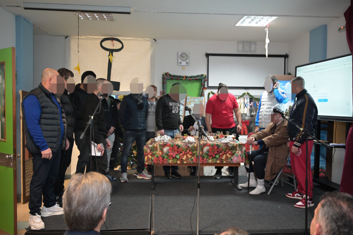 Η εκδήλωση ξεκίνησε με τη θεατρική παράσταση «Το χωριό που ξέχασε τα Χριστούγεννα», όπου οι εκπαιδευόμενοι, μέσα από τον συμβολισμό του έργου, υπενθύμισαν την αξία της μνήμης, της κοινότητας και της ανθρωπιάς. Ακολούθησε η απόδοση των καλάντων – τόσο των παραδοσιακών της κοινωνίας όσο και των καλάντων της φυλακής, που αποτυπώνουν με μοναδικό τρόπο τη ζωή και τα συναισθήματα πίσω από τα κάγκελα.