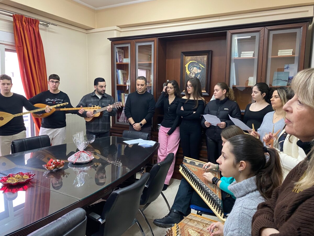 Αντιπροσωπία μαθητών/τριών σχολείων επισκέφθηκε σήμερα τη Διεύθυνση Δευτεροβάθμιας Εκπαίδευσης Λάρισας για τις καθιερωμένες ευχές και τα κάλαντα των Χριστουγέννων.