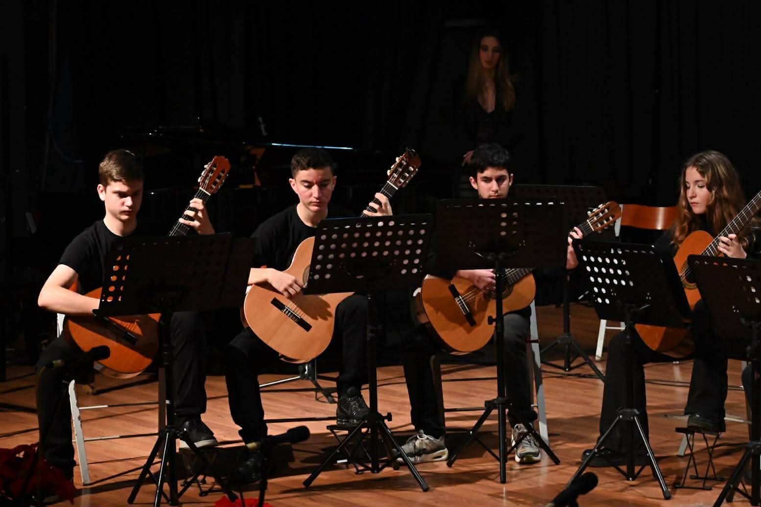 Το Σύγχρονο Ωδείο Λάρισας πραγματοποίησε με επιτυχία την τελευταία Χριστουγεννιάτικη συναυλία των συνόλων στο αμφιθέατρο του Μουσικού Σχολείου Λάρισας.