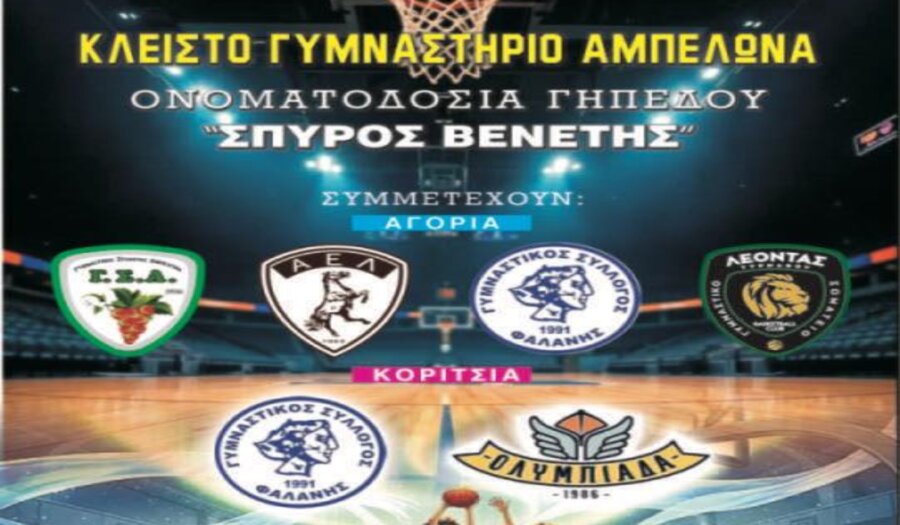 Ο Πρόεδρος, το Δ.Σ, το προπονητικό επιτελείο, οι αθλητές και τα μέλη της ομάδας μπάσκετ του Γυμναστικού Συλλόγου Αμπελώνα 1986, σας προσκαλούν στο 2° Τουρνουά Μπάσκετ «Σπύρος Βενέτης» και όπως αναφέρουν η παρουσία σας θα τους τιμήσει ιδιαίτερα.