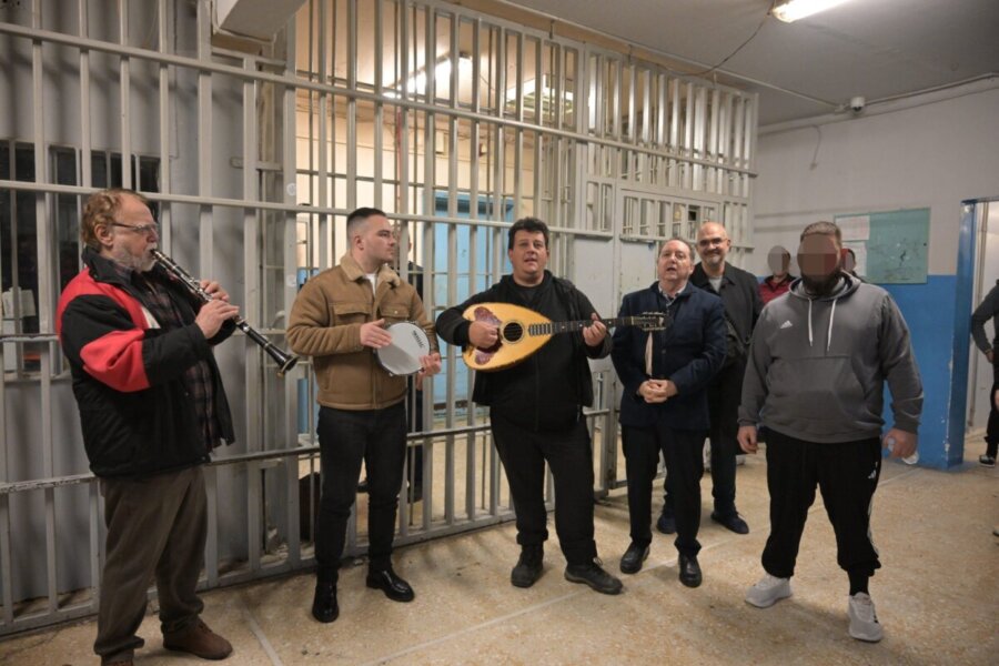 Κλαρίνο, λαούτο και κρουστά έδωσαν τον ρυθμό, κρατώντας ζωντανό το έθιμο και δημιουργώντας εορταστικό κλίμα στις φυλακές, υπενθυμίζοντας πως η παράδοση, η ανθρωπιά και φυσικά η μουσική ενώνουν και αφορούν όλους.