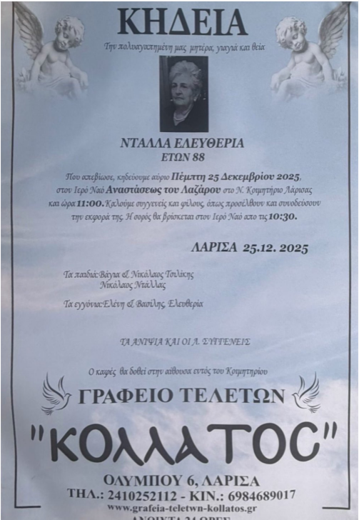 Έφυγε από τη ζωή σε ηλικία 88 ετών η Ελευθερία Ντάλλα.