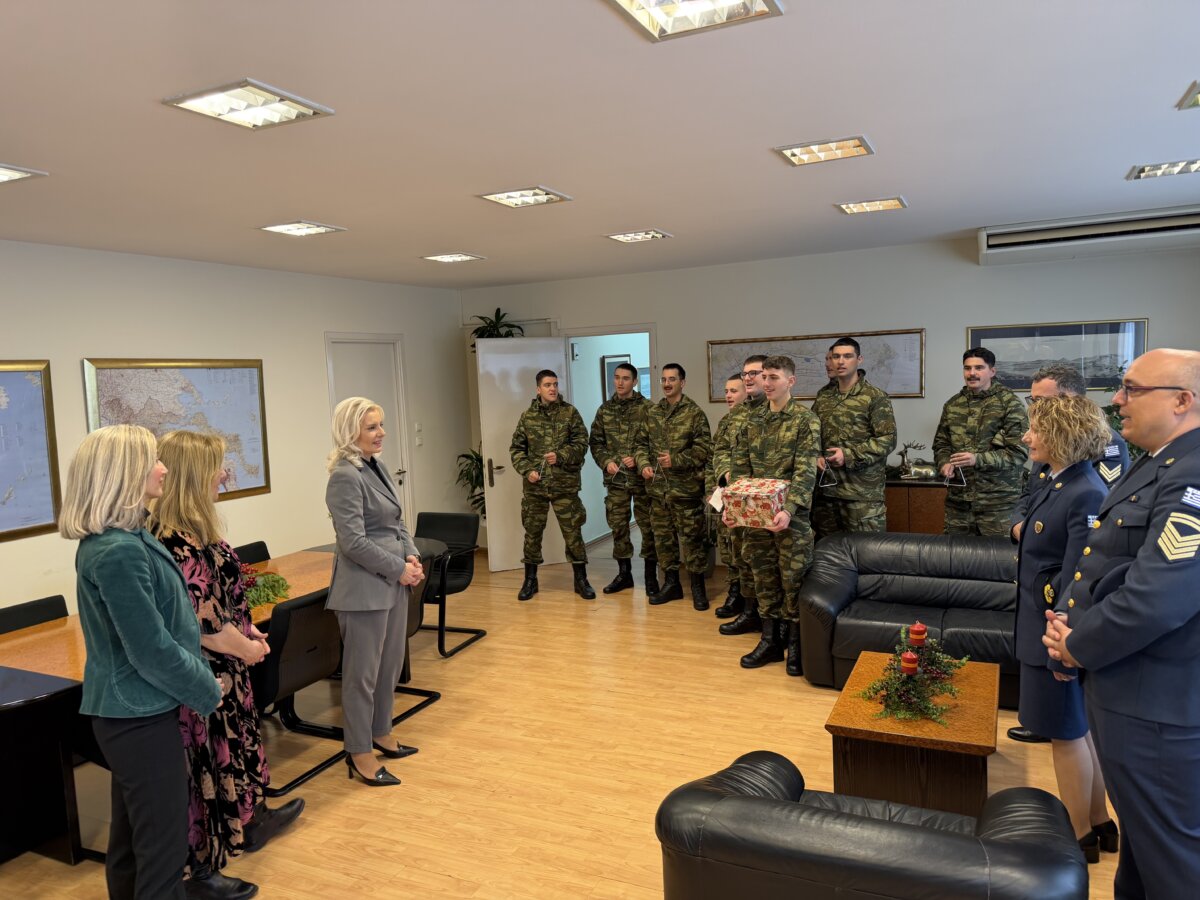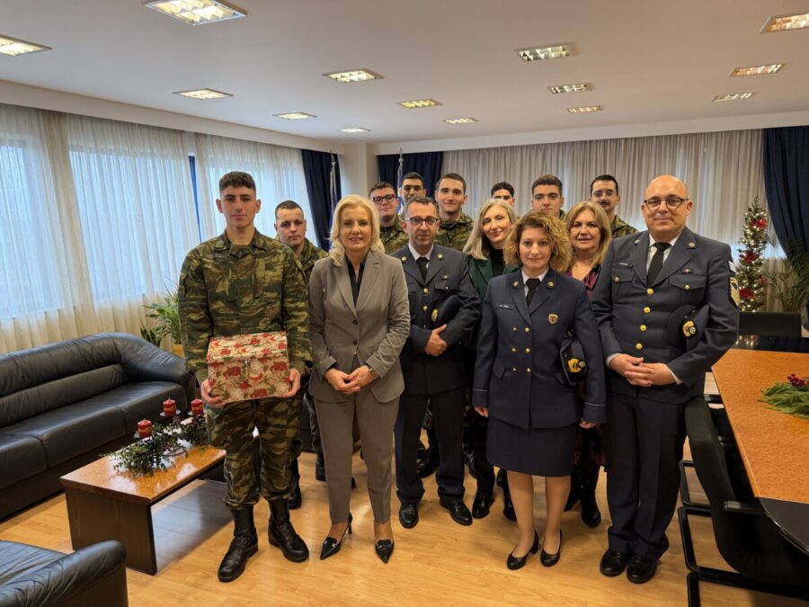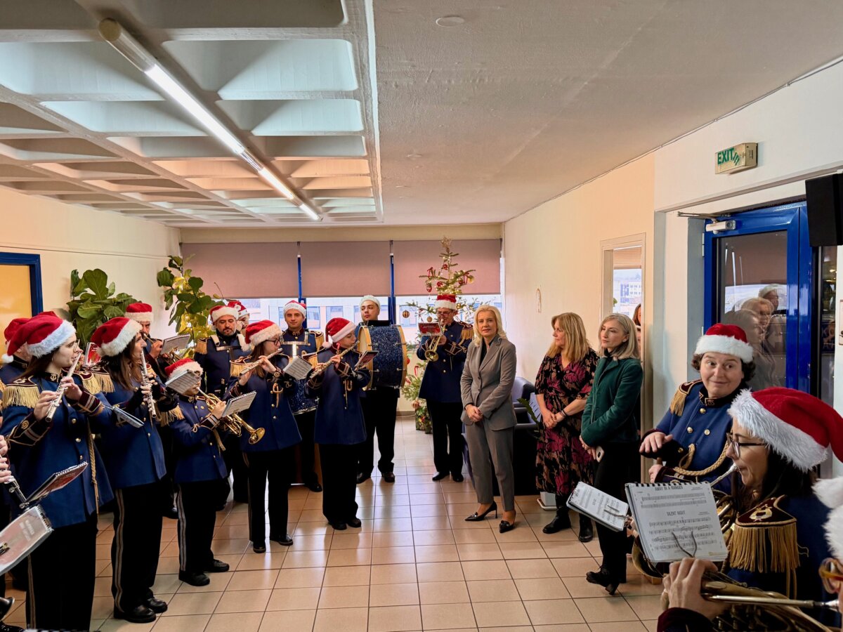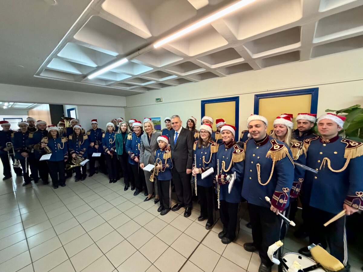 Τη Γενική Γραμματέα της Αποκεντρωμένης Διοίκησης Θεσσαλίας – Στερεάς Ελλάδας, κα Ρένα Καραλαριώτου, επισκέφθηκαν σήμερα, παραμονή Χριστουγέννων, για να ψάλουν τα χριστουγεννιάτικα κάλαντα, η Φιλαρμονική του Δημοτικού Ωδείου Λάρισας (ΔΩΛ), η μπάντα της 1ης Στρατιάς, καθώς και η μπάντα της 110 Πτέρυγας Μάχης.
