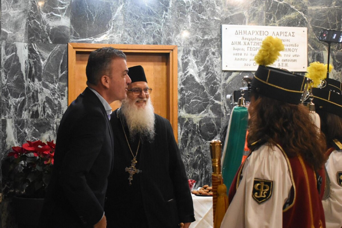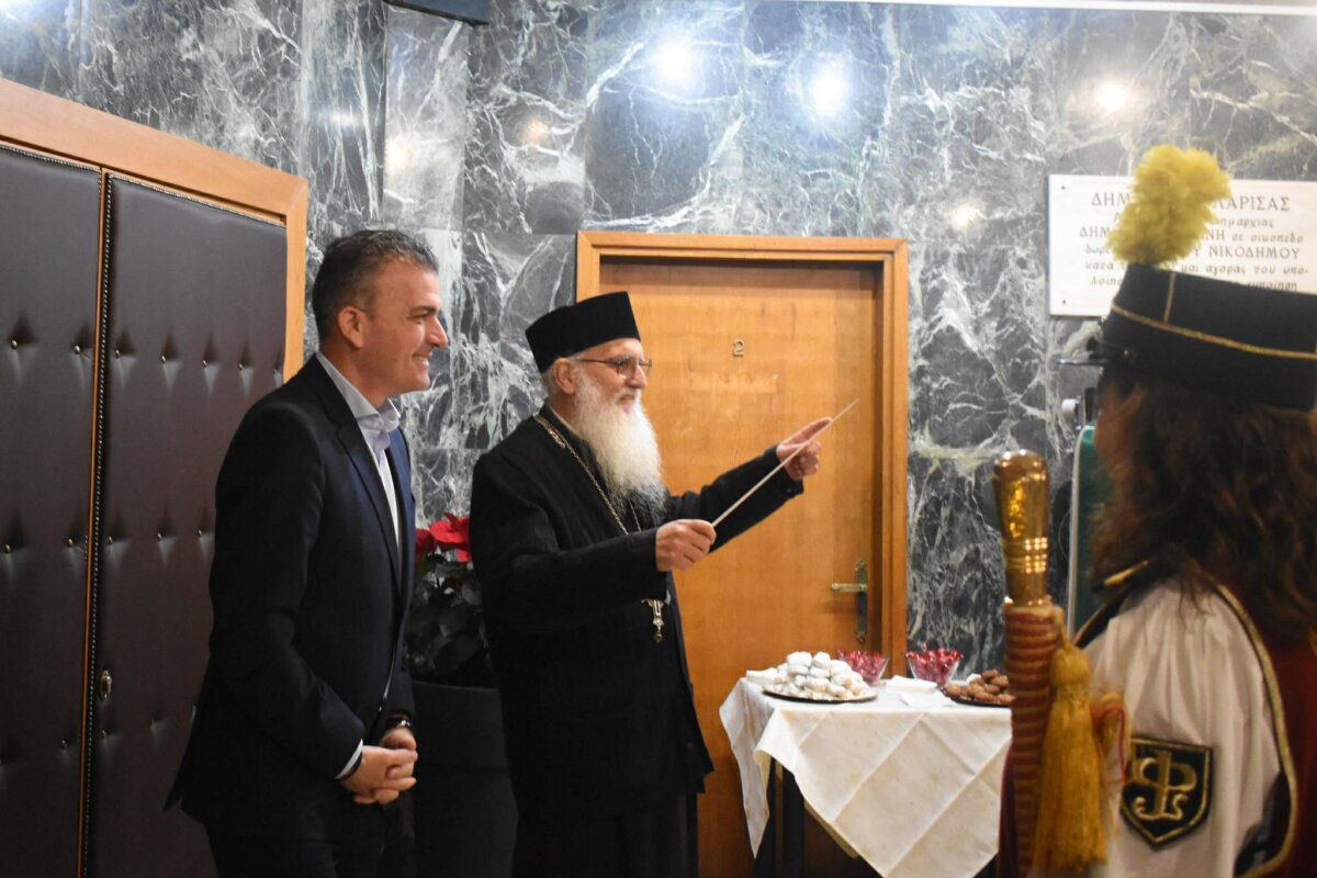Εορταστικό κλίμα σήμερα από νωρίς το πρωί στο Δημαρχείο Λάρισας, εκεί που ο δήμαρχος Λαρισαίων υποδέχεται πολίτες αλλά και φορείς, ανταλλάσσοντας ευχές για τα Χριστούγεννα.