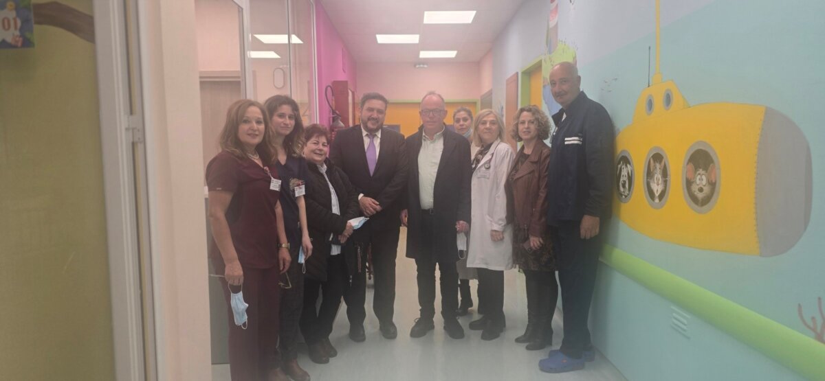 Ο Πρόεδρος του Επιμελητηρίου Λάρισας Χρήστος Γιακουβής επισκέφθηκε σήμερα το πρωί την παιδιατρική κλινική του Κουτλιμπάνειου και Τριανταφύλλειου Νοσοκομείου της πόλης μας και προσέφερε συμβολικά δώρα στα παιδιά που νοσηλεύονται στην κλινική του Νοσοκομείου. O Πρόεδρος είχε την ευκαιρία να ανταλλάξει ευχές με τον Διοικητή του Γενικού Νοσοκομείου Γρηγόρη Βλαχάκη, τη Διευθύντρια της παιδιατρικής Σοφία Αλευρά καθώς και το ιατρικό, νοσηλευτικό και διοικητικό προσωπικό, υπογραμμίζοντας το σπουδαίο έργο και τη μεγάλη προσφορά τους στην τοπική κοινωνία.