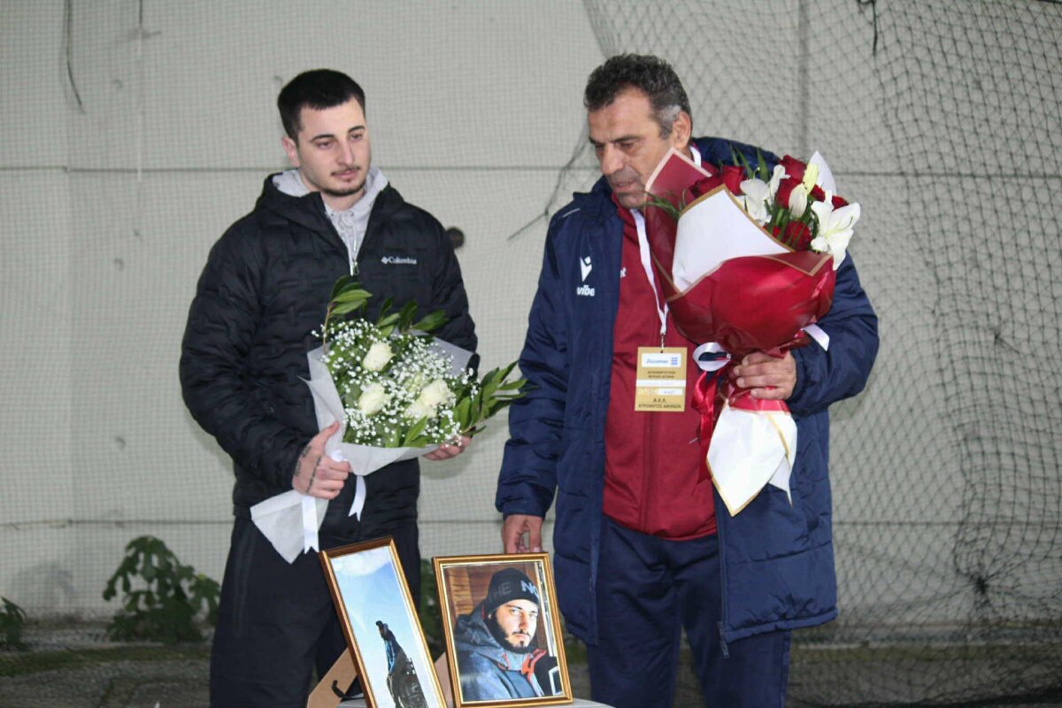 Με τις φωτογραφίες του σε περίοπτη θέση και ένα πανό αποχαιρετισμού τίμησαν τον Θέμη Ζαχαράκη οι οργανωμένοι, ενώ εκ μέρους της ΠΑΕ ΑΕΛ τιμητική πλακέτα παραδόθηκε σε μέλος της οικογένειάς του, από τον Γενικό Αρχηγό της ομάδας, Θωμά Κυπαρίσση.