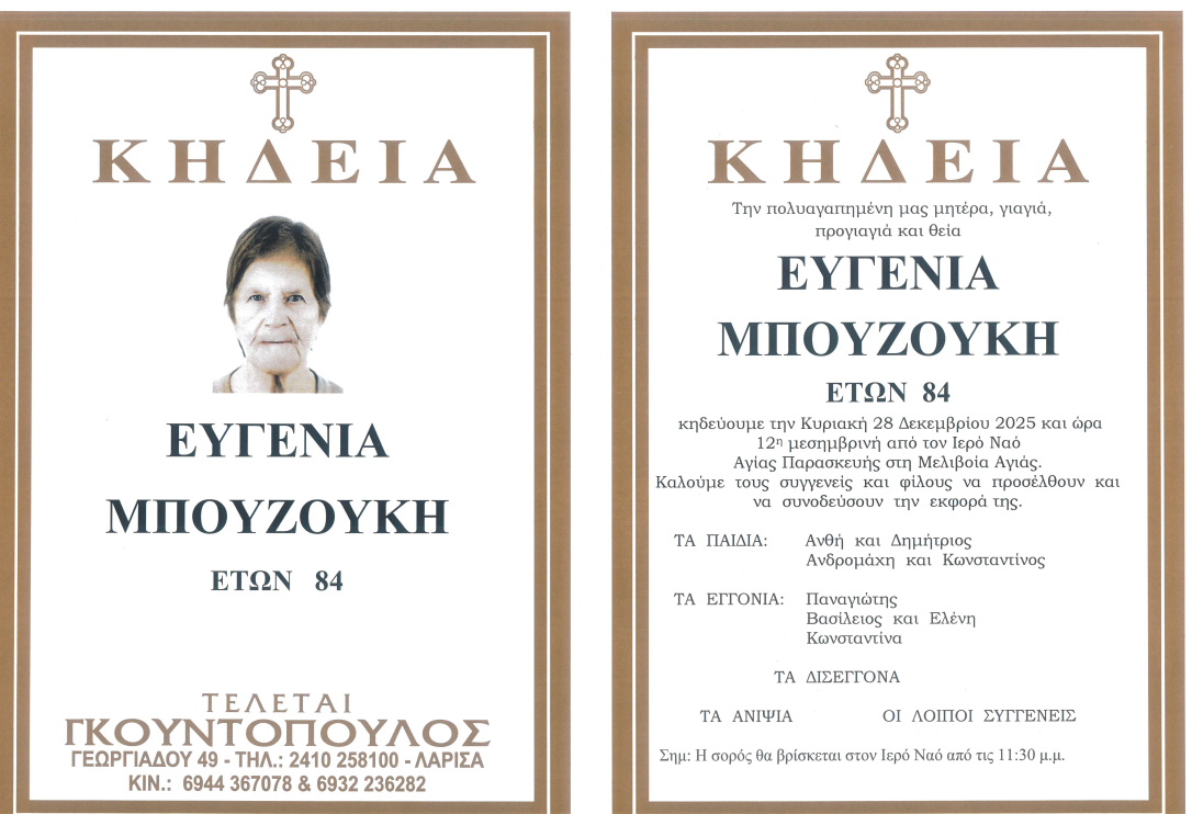 Λάρισα Ν. Πλακιάς: Μηνυτήρια αναφορά για υπερτιμολογήσεις έργων διαμόρφωσης στον τόπο της τραγωδίας των Τεμπών 27/12/2025, 21:21