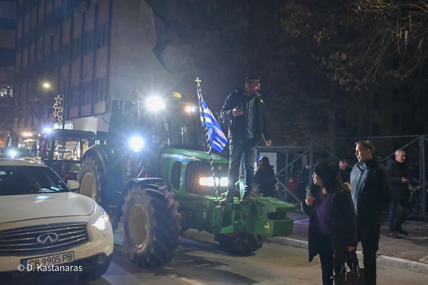 Οι αγρότες αναμένουν την άφιξη επιπλέον δυνάμεων από το Αχίλλειο, με τα τρακτέρ να υπολογίζεται ότι θα φτάσουν γύρω στις 8:30 το βράδυ.
