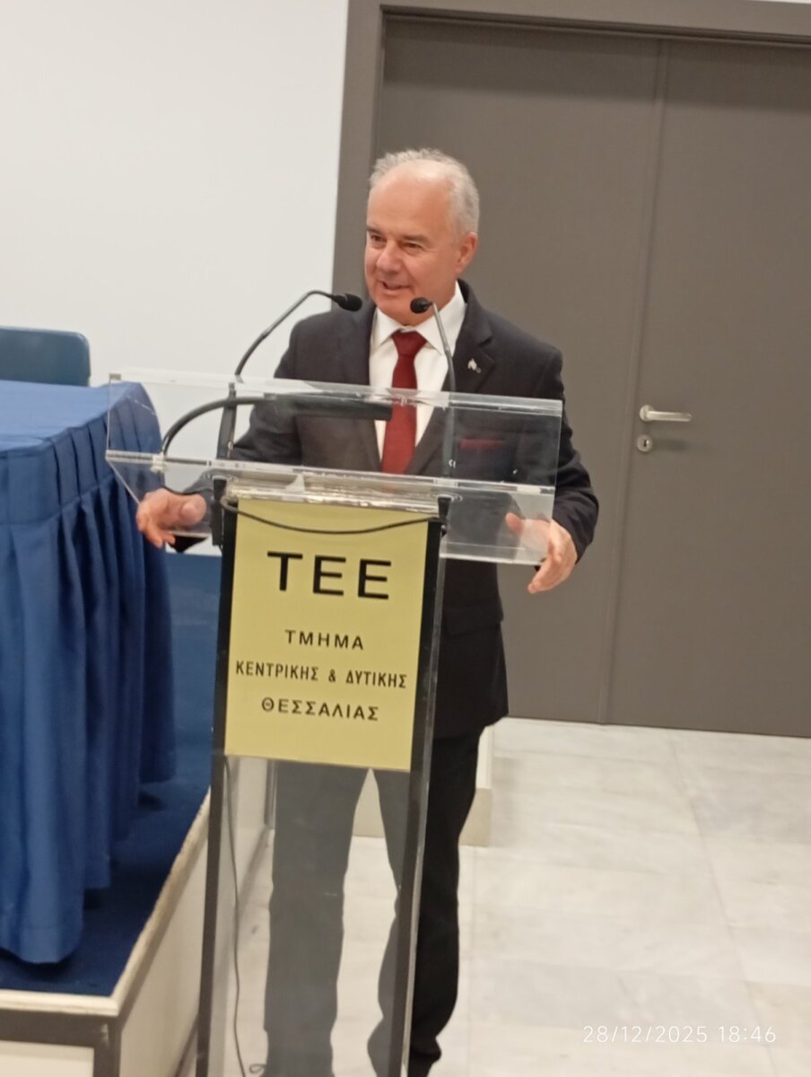 «Θέλω να σας ευχαριστήσω θερμά για την πρόσκληση και να συγχαρώ το Περιφερειακό Τμήμα Κεντρικής & Δυτικής Θεσσαλίας του ΤΕΕ για αυτή τη σημαντική εκδήλωση που τιμά τη γνώση και την προσπάθεια.