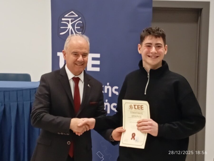 Πραγματοποιήθηκε την Κυριακή 28 Δεκεμβρίου, στο κτίριο του Τεχνικού Επιμελητηρίου Ελλάδος στη Λάρισα, η καθιερωμένη ετήσια εκδήλωση βράβευσης του ΤΕΕ – Περιφερειακού Τμήματος Κεντρικής & Δυτικής Θεσσαλίας, παρουσία γονέων και μαθητών που αρίστευσαν κατά το σχολικό έτος 2024–2025 ή πέτυχαν την εισαγωγή τους στην Τριτοβάθμια Εκπαίδευση.