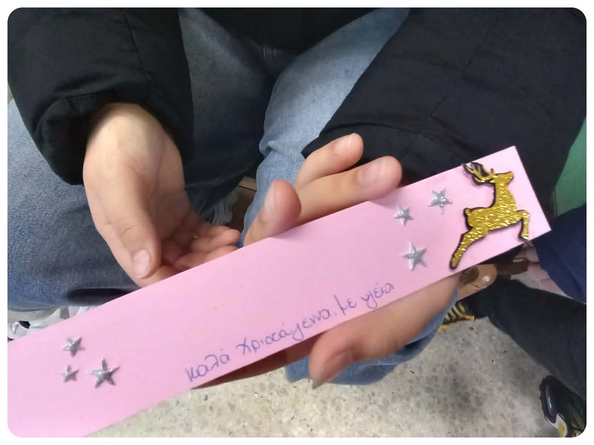 Ιδιαίτερη θέση στη δράση κατείχε η δημιουργία χριστουγεννιάτικων σελιδοδεικτών από τους μαθητές/-τριες. Με χρώματα, σχέδια και προσωπικά μηνύματα-ευχές χριστουγεννιάτικες, τα παιδιά κατασκεύασαν τους δικούς τους σελιδοδείκτες, μια δραστηριότητα που τα χαροποίησε ιδιαίτερα και ενίσχυσε τη σχέση τους με το βιβλίο. Οι σελιδοδείκτες αποτέλεσαν όχι μόνο χρηστικά αντικείμενα, αλλά και μικρά έργα τέχνης, γεμάτα φαντασία και συναίσθημα.