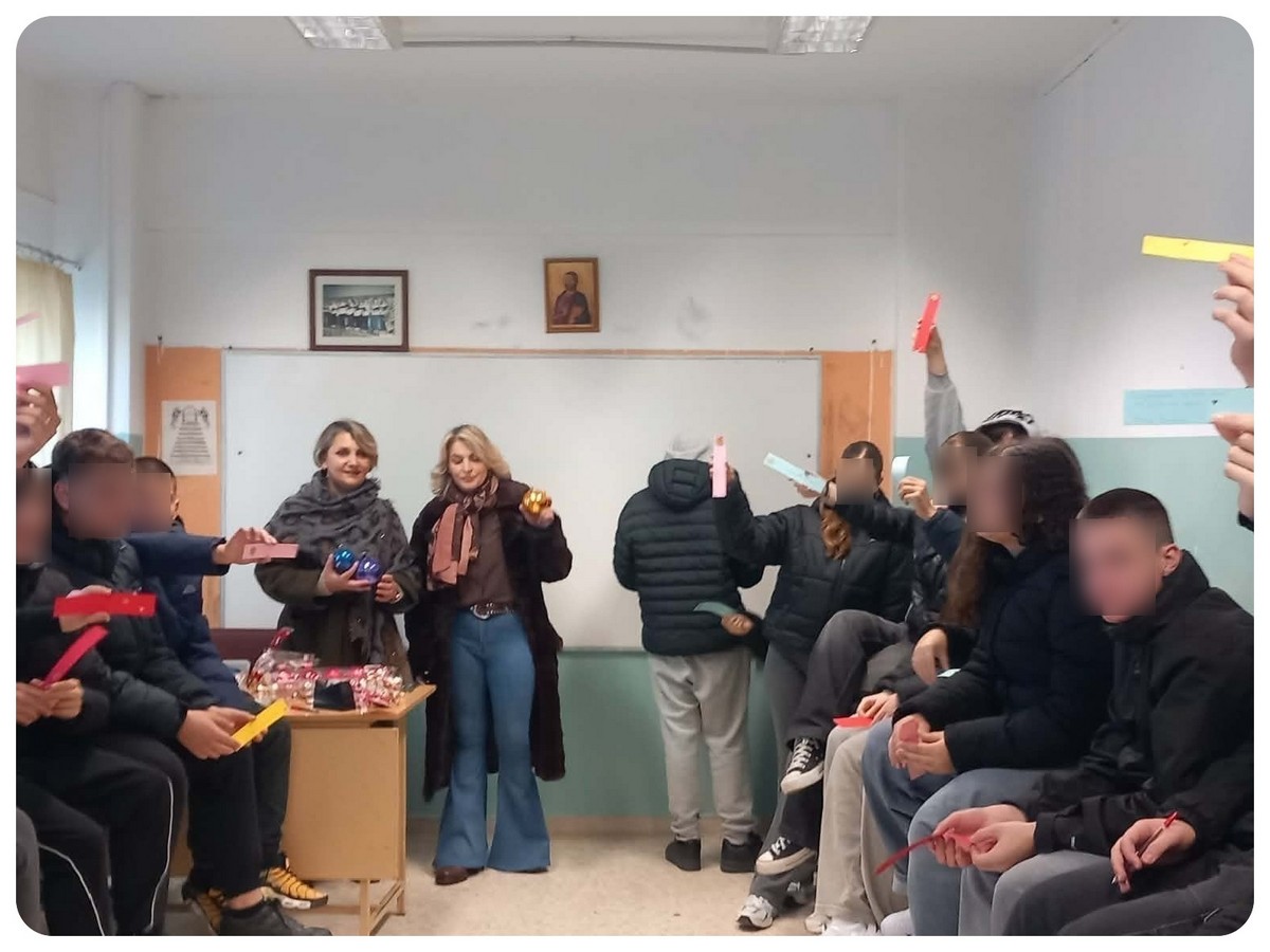 Χριστουγεννιάτικα στολίδια, φωτεινά χρώματα, χειροποίητες κατασκευές και θεματικές γωνιές εμπνευσμένες από αγαπημένες ιστορίες και παραμύθια στόλισαν τη Βιβλιοθήκη, προσδίδοντάς της μια ιδιαίτερη αισθητική. Το δέντρο των βιβλίων (βιβλία Καινής Διαθήκης, προσφορά κατά την επίσκεψη του Σεβασμιοτάτου Μητροπολίτη Θεσσαλιώτιδος και Φαναριοφερσάλων στο Σχολείο μας), οι φιγούρες χριστουγεννιάτικων ηρώων και τα διακοσμημένα ράφια δημιούργησαν μια ατμόσφαιρα θαλπωρής και χαράς, όπου η ανάγνωση μετατράπηκε σε μια ευχάριστη, γιορτινή εμπειρία. Ο στολισμός δεν είχε μόνο διακοσμητικό χαρακτήρα, αλλά λειτούργησε και ως αφορμή για συζήτηση, αφήγηση και δημιουργική έκφραση.