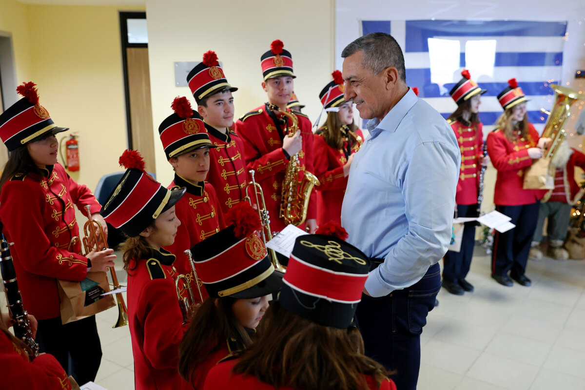 Ο Περιφερειάρχης, παρουσία του Αντιπεριφερειάρχη Πρωτογενούς Τομέα και Αγροτικής Οικονομίας κ. Δημήτρη Τσέτσιλα και του Συντονιστή της Πολιτικής Προστασίας κ. Δημήτρη Μπίκου, μοίρασε αναμνηστικά δώρα στα παιδιά, καθώς και ένα χρηματικό πόσο για την υποστήριξη της Φιλαρμονικής Αλμυρού ως είθισται κατά τα κάλαντα και ευχήθηκε Καλή Χρονιά σε όλους.