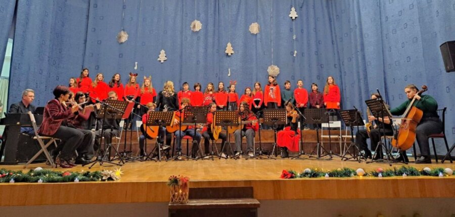 Μεταλλόφωνα, κουδουνάκια και όμορφες μελωδίες του P.I.Tchaikovsky πλημμύρισαν την αίθουσα μέσα σε μια ατμόσφαιρα χαράς και ζεστασιάς. Στη συνέχεια τα ορχηστρικά σύνολα της μουσικής σχολής ερμήνευσαν υποδειγματικά χριστουγεννιάτικες και πρωτοχρονιάτικες μελωδίες μεταφέροντας σε όλους το πνεύμα των Χριστουγέννων ενώ η χορωδία της μουσικής σχολής τραγούδησε χριστουγεννιάτικα κάλαντα από διάφορες περιοχές της Ελλάδας δίνοντας μηνύματα ευτυχίας και ελπίδας σε όλο τον κόσμο.
