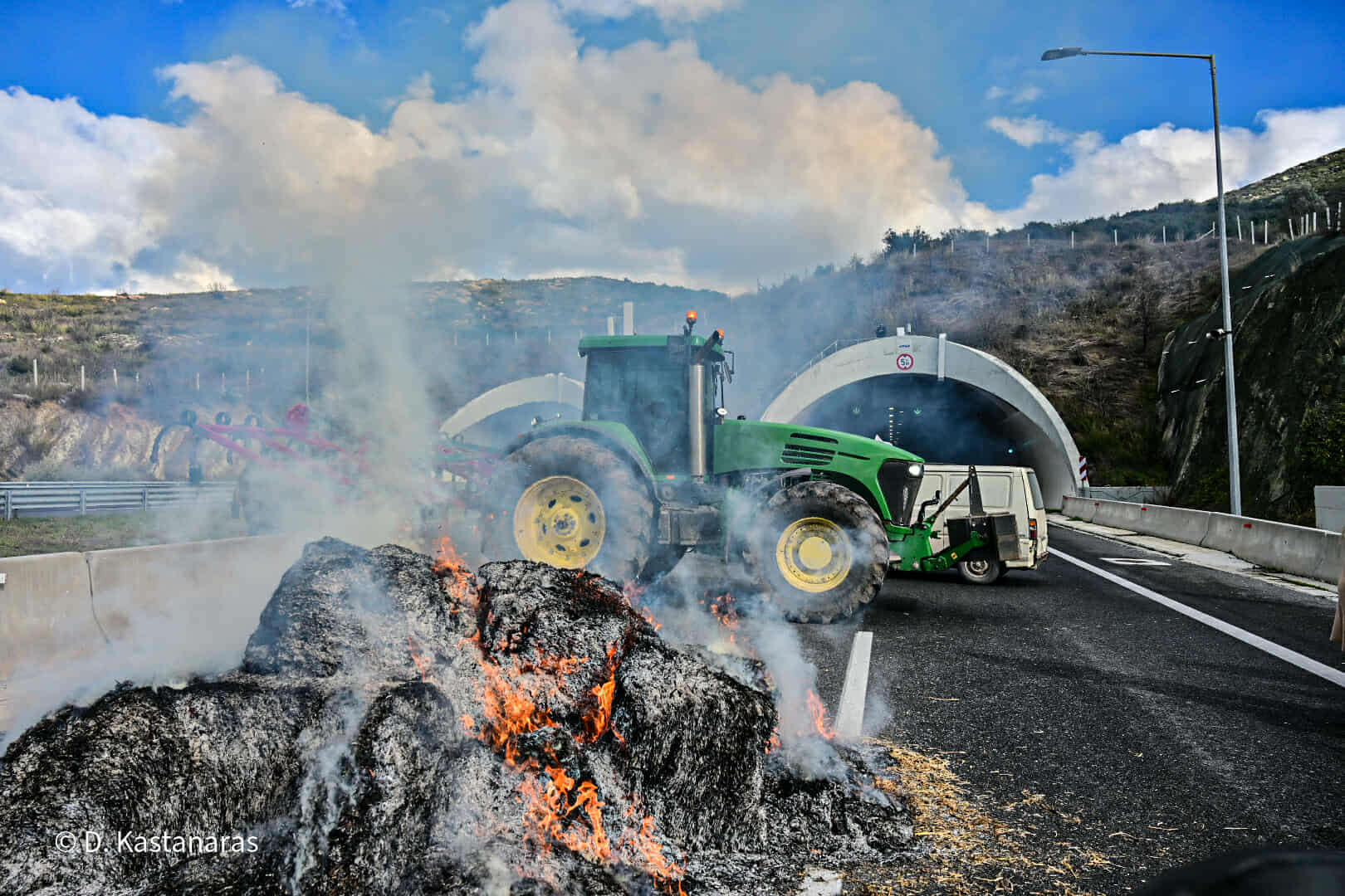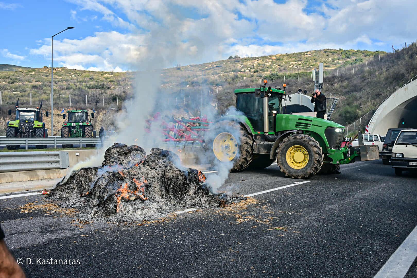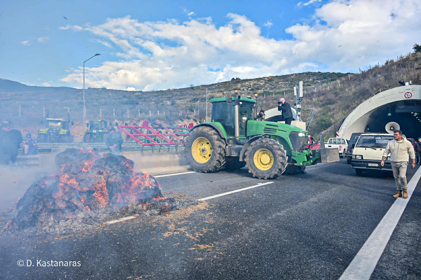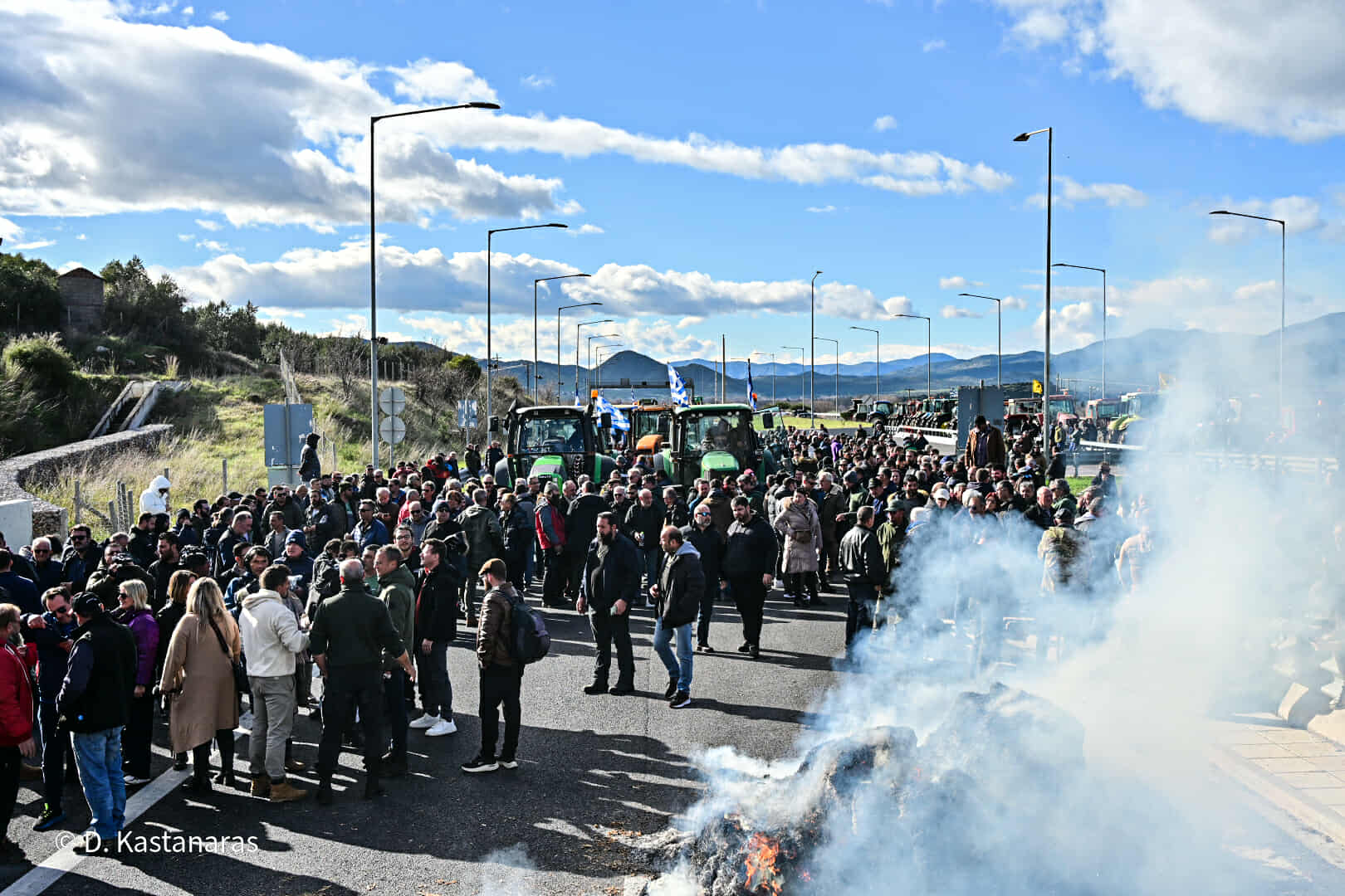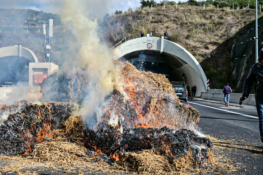 Κομβόι πλέον των 100 τρακτέρ και αγροτικών μηχανημάτων έφτασε το μεσημέρι στην κοιλάδα των Τεμπών, με τους αγανακτισμένους αγρότες να βάζουν συμβολικά φωτιά σε ζωοτροφές, δηλώνοντας αποφασισμένοι να δώσουν τη μάχη της επιβίωσης μέχρι να υπάρξουν ουσιαστικές απαντήσεις στα αιτήματά τους.