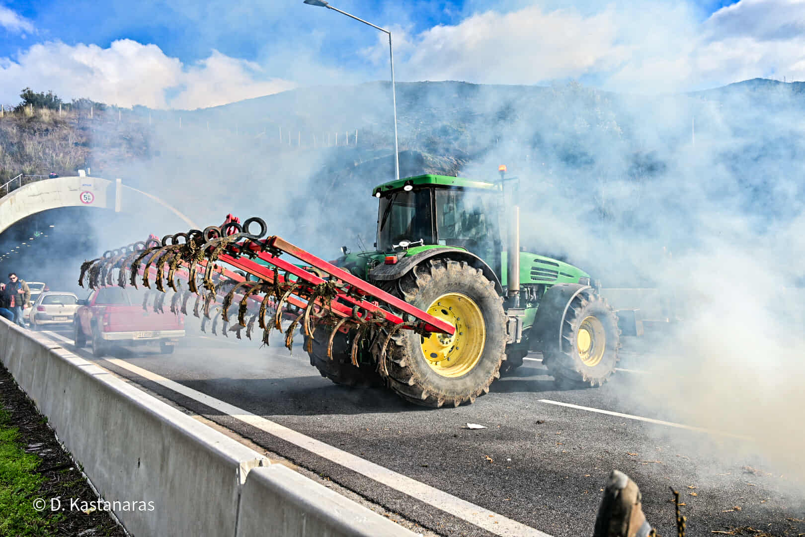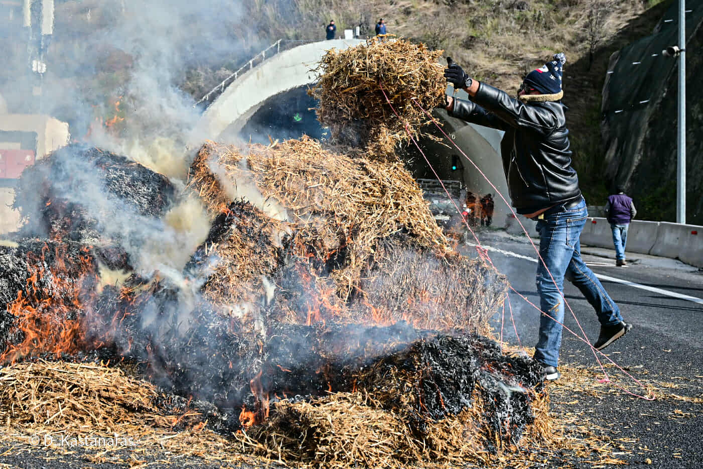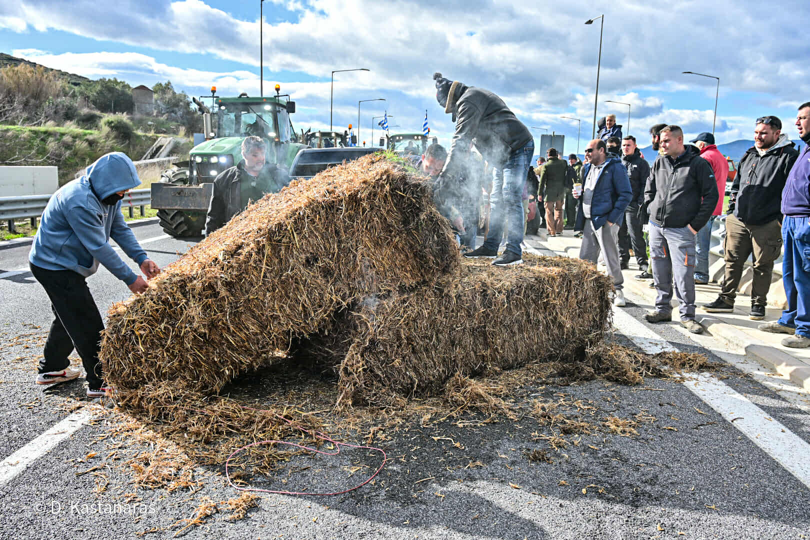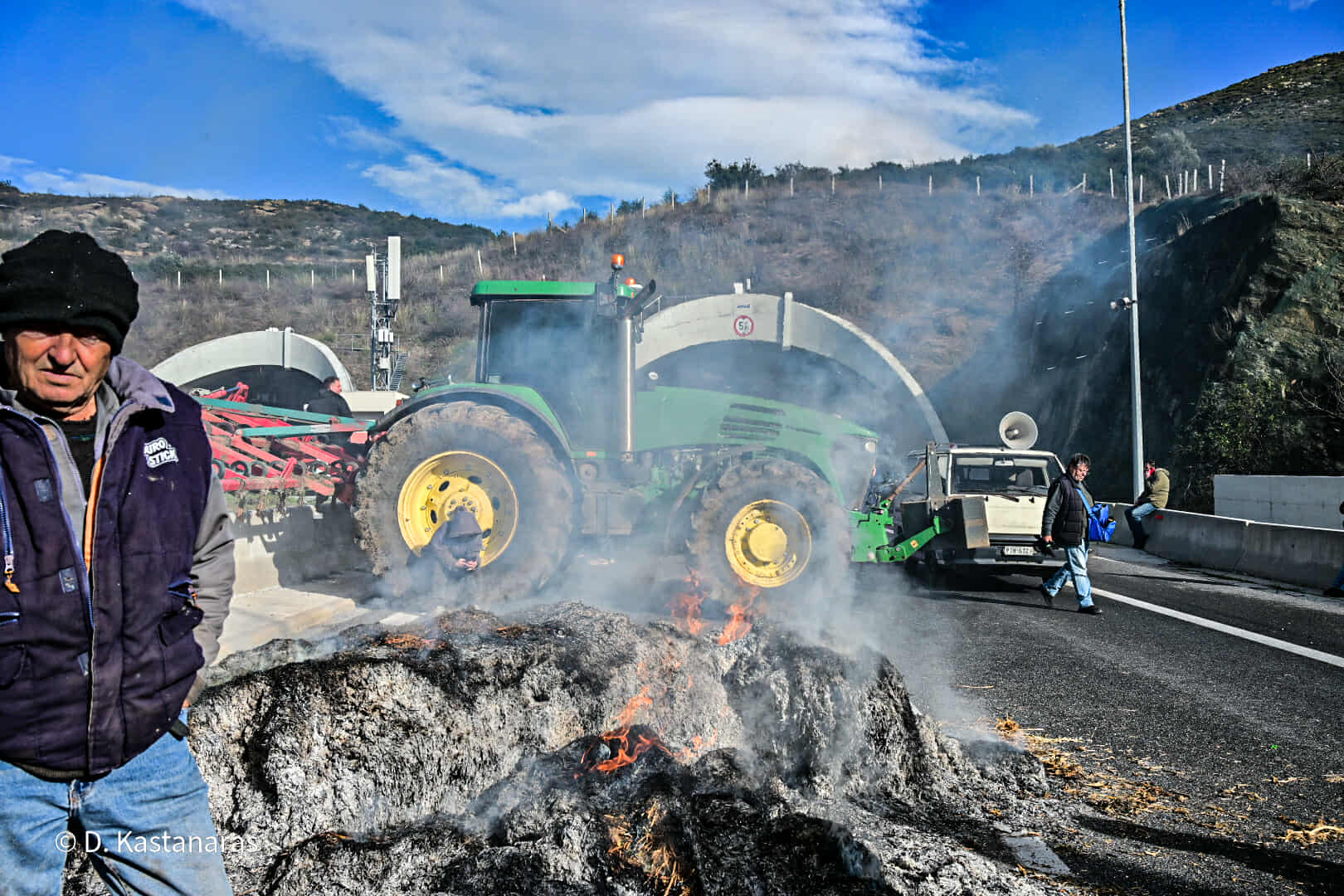 Κομβόι πλέον των 100 τρακτέρ και αγροτικών μηχανημάτων έφτασε το μεσημέρι στην κοιλάδα των Τεμπών, με τους αγανακτισμένους αγρότες να βάζουν συμβολικά φωτιά σε ζωοτροφές, δηλώνοντας αποφασισμένοι να δώσουν τη μάχη της επιβίωσης μέχρι να υπάρξουν ουσιαστικές απαντήσεις στα αιτήματά τους.