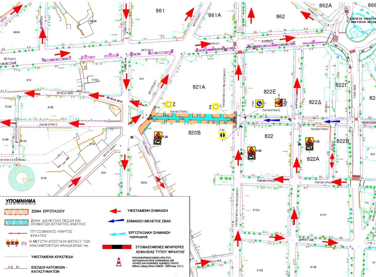 Παράλληλα, γίνεται προσωρινά διπλής κατεύθυνσης το τμήμα της οδού ΑΡΙΣΤΕΙΔΟΥ (από την οδό ΠΑΛΑΙΣΤΙΝΗΣ έως την οδό ΚΥΠΡΟΥ)
