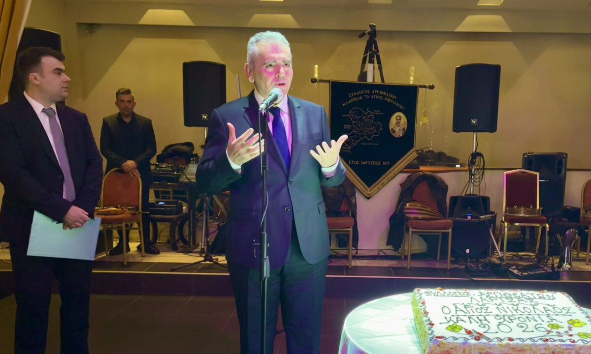 Ο Θεσσαλός πολιτικός στον χαιρετισμό του συνεχάρη τον πρόεδρο κ. Κωνσταντίνο Σιατραβάνη «γιατί είστε από τους δραστήριους συλλόγους στην Λάρισα. Αγαπητέ Δήμαρχε Λαρισαίων (Θανάση Μαμάκο) η Λάρισα είναι μια μεγαλούπολη τόσο όσο να γνωριζόμαστε, να διατηρούμε ανθρώπινες σχέσεις, να μη χανόμαστε μέσα στη συνάφεια του κόσμου. Και είναι σημαντικό ότι μια μεγαλούπολη όπως η Λάρισα που φιλοξενεί ανθρώπους απ’ όλη τη Θεσσαλία, αλλά και απ’ όλη την Ελλάδα, δεν τους αλλοτριώνει, αλλά τους δίνει τη δυνατότητα να διατηρούν τις ιδιαίτερες παραδόσεις, τα ήθη και τα έθιμα από τη γενέτειρά τους.