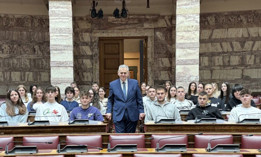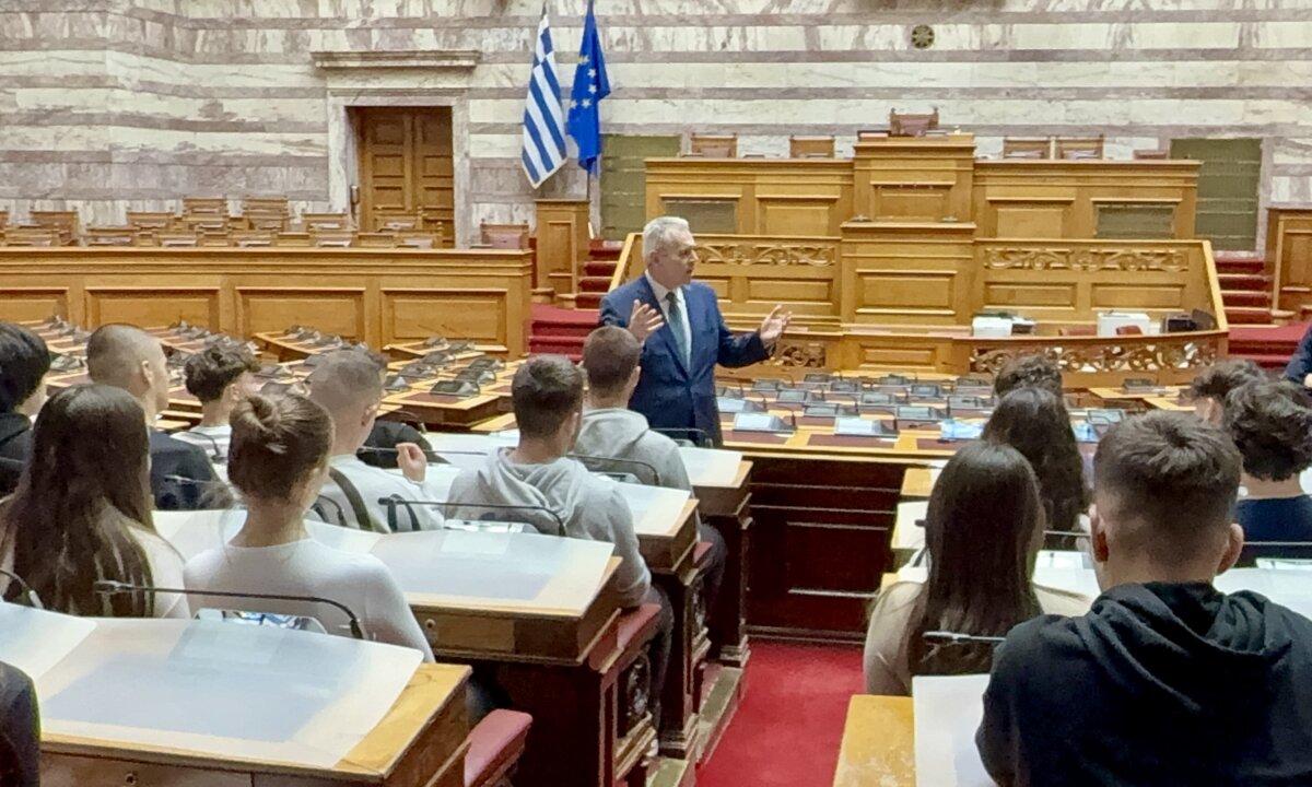 Τα παραπάνω τόνισε ο Γενικός Γραμματέας της Κοινοβουλευτικής Ομάδας της Νέας Δημοκρατίας, βουλευτής Λαρίσης, κ. Μάξιμος Χαρακόπουλος, μιλώντας στις μαθήτριες και τους μαθητές του 1ου Γενικού Λυκείου Γρεβενών, που με τις συνοδούς εκπαιδευτικούς τους κ.κ. Στεργιανή Κιοσσέ, Βικτωρία Παπανικολάου και Ευαγγελία Κατσιώνη πραγματοποίησαν εκπαιδευτική εκδρομή στη Βουλή.