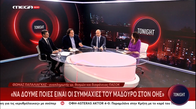 Στην εκπομπή Tonight του Mega News συμμετείχε ο αν. γραμματέας Θεσμών και Διαφάνειας του ΠΑΣΟΚ Θωμάς Παπαλιάγκας.