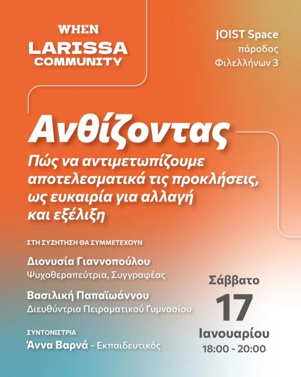Το Σάββατο 17/01/2026 στη Λάρισα θα γίνει μια πολύ ενδιαφέρουσα κουβέντα στα πλαίσια του WHEN.org.gr