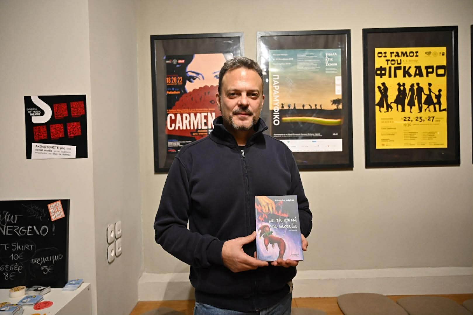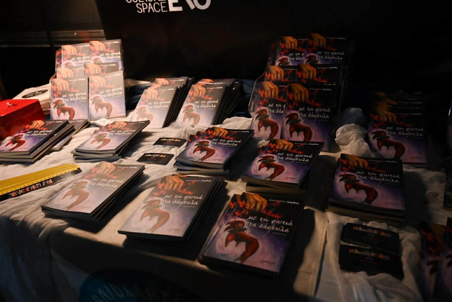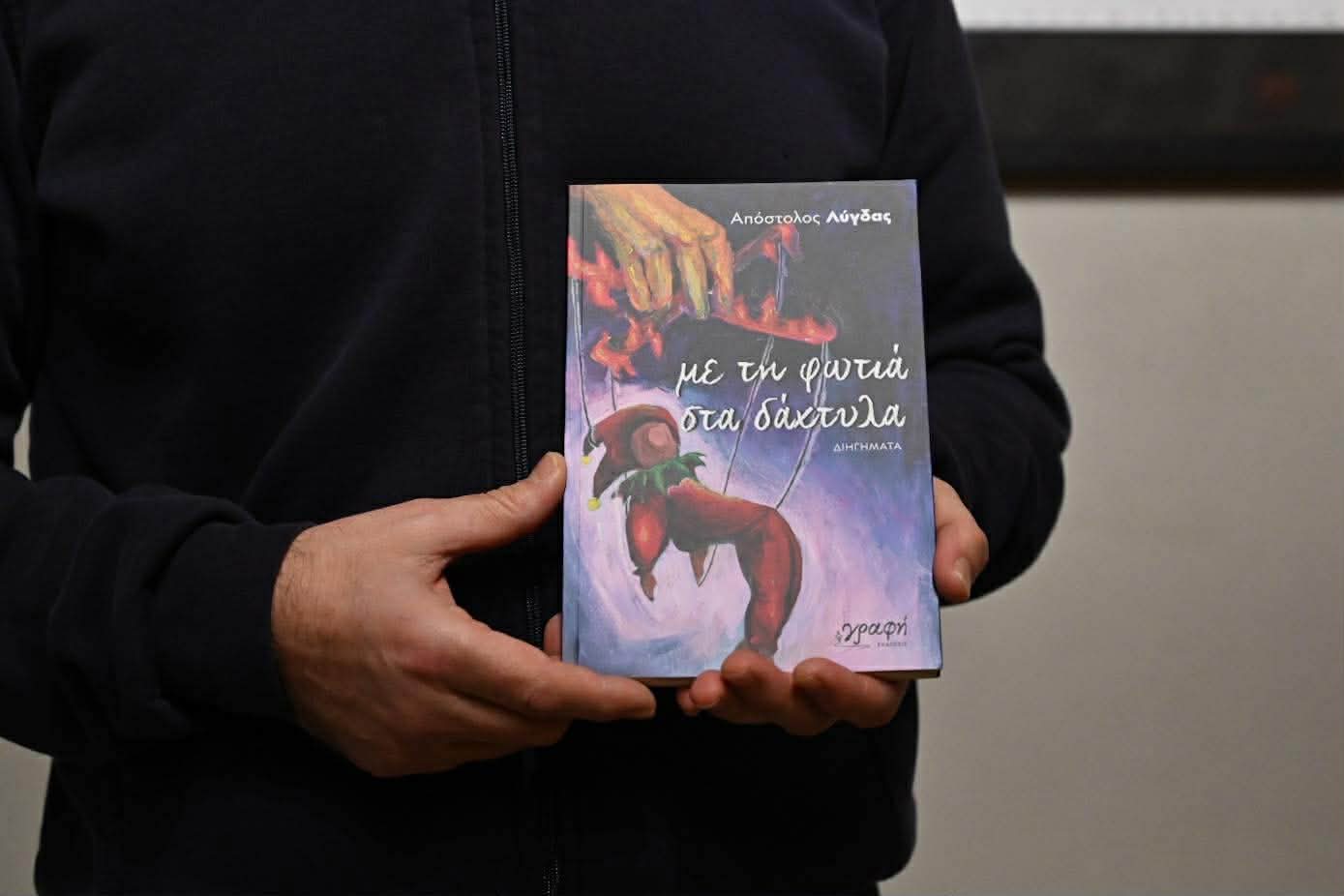 Μια ζεστή λογοτεχνική βραδιά πραγματοποιήθηκε απόψε στον χώρο πολιτισμού «Synergeio», όπου παρουσιάστηκε το βιβλίο του Απόστολου Λύγδα με τίτλο «Με τη φωτιά στα δάχτυλα».