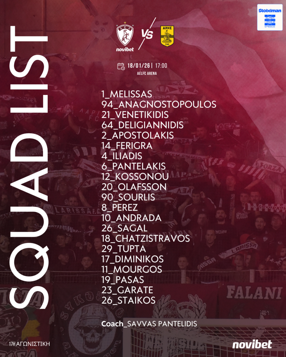 Ολοκληρώθηκε το πρωί του Σαββάτου (17/01) η προετοιμασία της ΑΕΛ Novibet για τον αγώνα Πρωταθλήματος με αντίπαλο τον Άρη στο AEL FC ARENA για την 17η Αγωνιστική της Stoiximan Super League (18/01, 17:00).