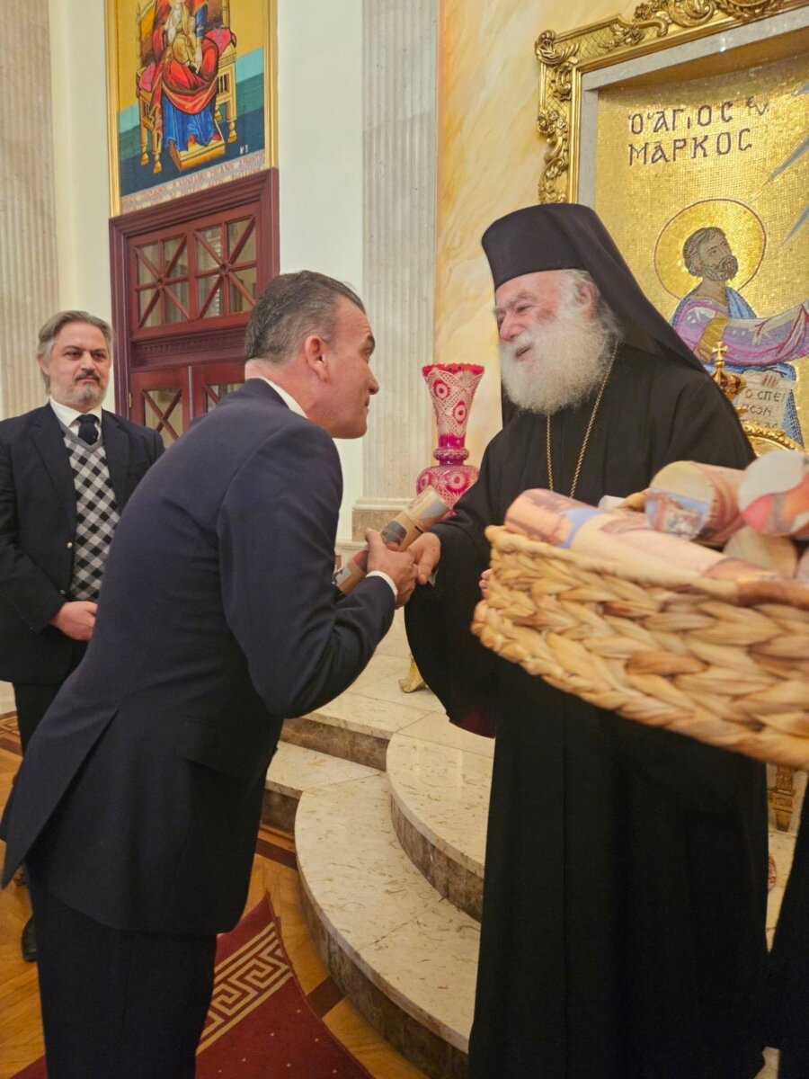 Ο κ. Μαμάκος είχε την ευκαιρία να συνομιλήσει με τον Μακαριώτατο και να ανταλλάξουν ευχές, αλλά και απόψεις για την ενίσχυση των συνεργειών και δεσμών τόσο της Κεντρικής Ένωσης Δήμων Ελλάδος, όσο και της Λάρισας με την κοινότητα της Αλεξάνδρειας.