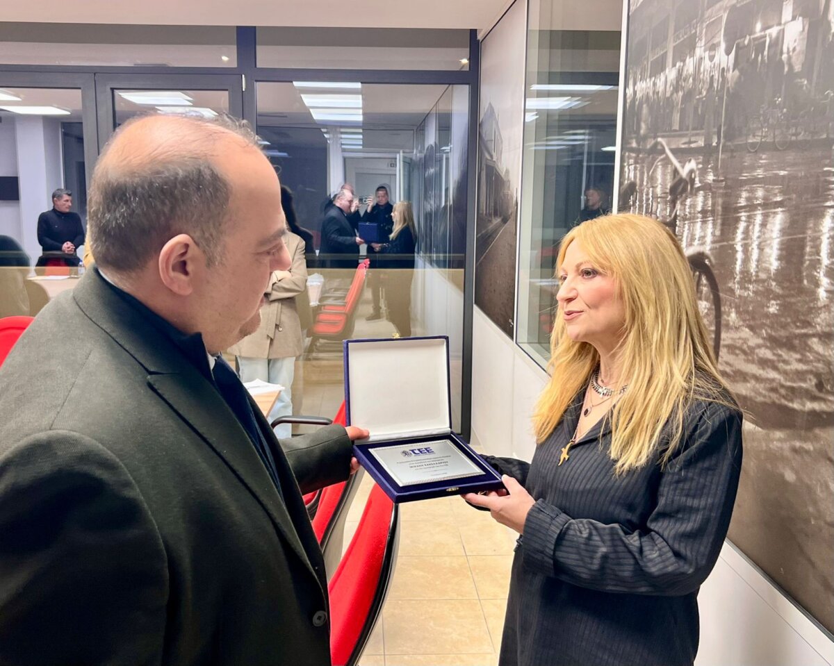 Κατά τη διάρκεια της τελετής ονοματοδοσίας, ο Πρόεδρος και η Διοικούσα Επιτροπή του ΤΕΕ/ΤΚΔΘ, εμφανώς συγκινημένοι, παρέδωσαν τιμητική πλακέτα στην οικογένειά του, παρουσία της συζύγου του Μιχάλη, Μαρίας.