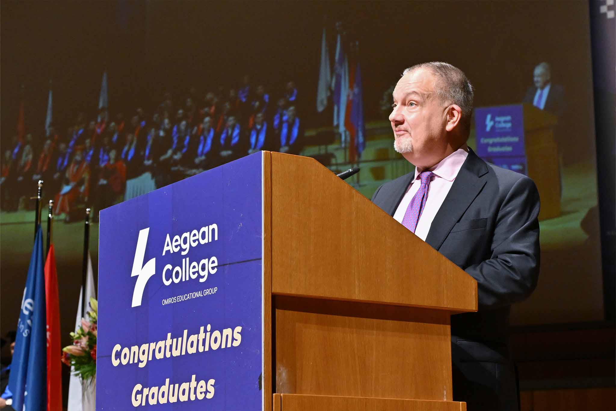 Ιδιαίτερη τιμή για το Κολλέγιο και τα βρετανικά Πανεπιστήμια που εκπροσωπήθηκαν αποτέλεσε η παρουσία και ο χαιρετισμός του Πρέσβη του Ηνωμένου Βασιλείου στην Ελλάδα, Matthew Lodge, ο οποίος απευθύνθηκε στους αποφοίτους και τις οικογένειές τους, αναδεικνύοντας τη σημασία και τα οφέλη της διεθνούς ακαδημαϊκής συνεργασίας.