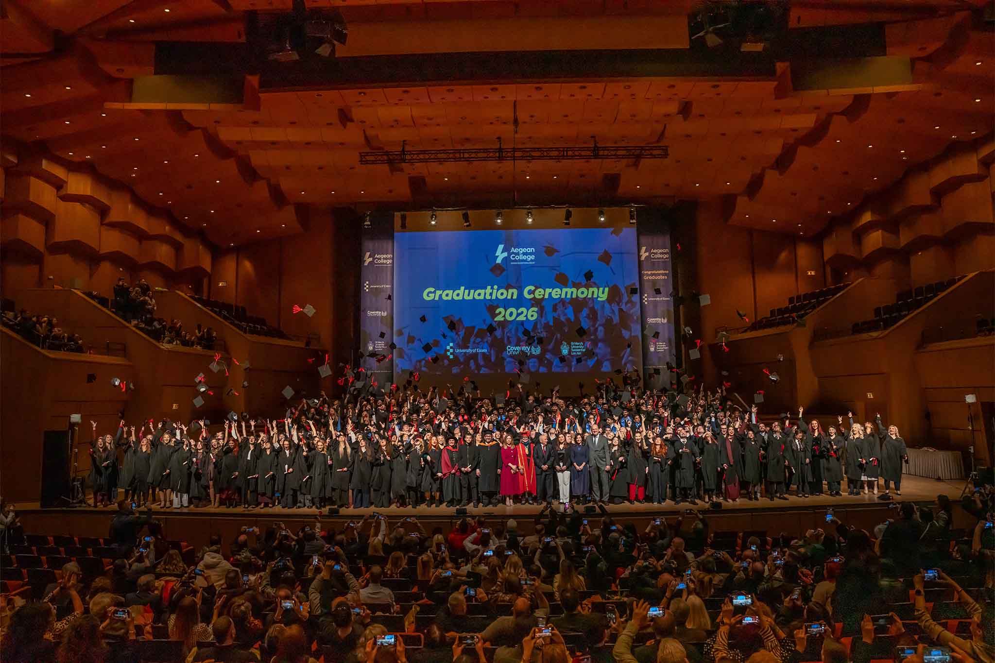 Με ιδιαίτερη λαμπρότητα, συγκίνηση και όμορφες στιγμές πραγματοποιήθηκε την Τετάρτη, 14 Ιανουαρίου 2026 η Τελετή Αποφοίτησης του Aegean College, στο Μέγαρο Μουσικής Αθηνών, σηματοδοτώντας την κορύφωση της ακαδημαϊκής πορείας εκατοντάδων φοιτητών και την έναρξη ενός νέου κεφαλαίου ζωής και επαγγελματικής εξέλιξης.
