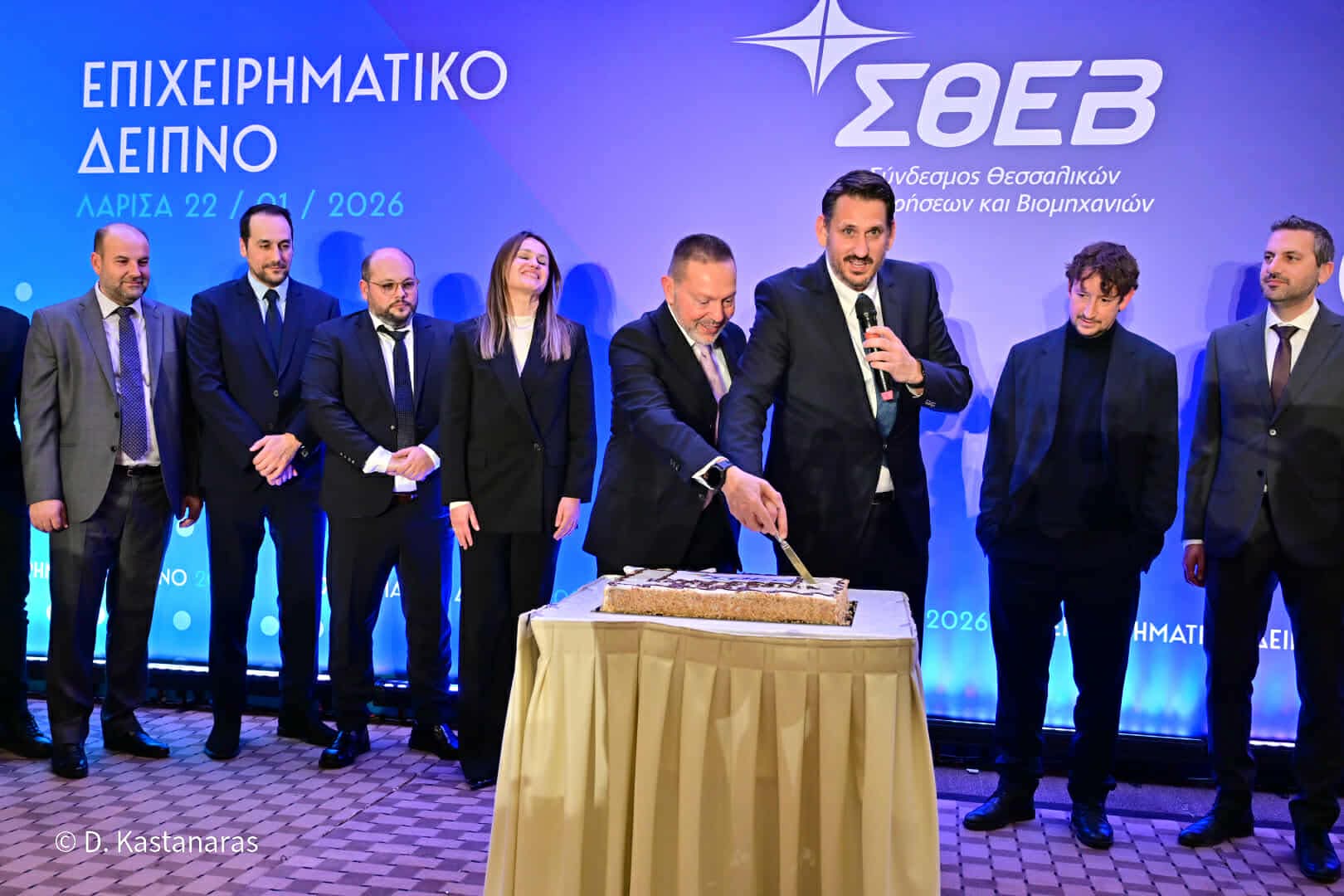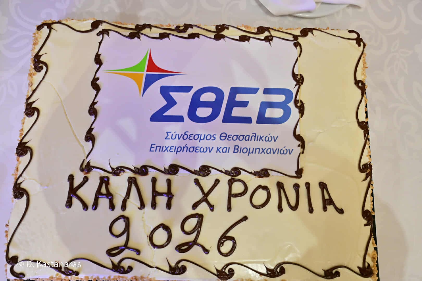 Μετά το πέρας του ετήσιου επιχειρηματικού δείπνου του Συνδέσμου Θεσσαλικών Επιχειρήσεων και Βιομηχανιών (ΣΘΕΒ), ακολούθησε η κοπή της πρωτοχρονιάτικης βασιλόπιτας.