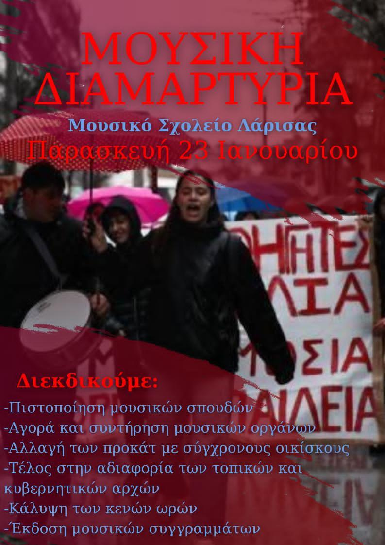 Για ακόμη μια χρονιά το Μουσικό Σχολείο Λάρισας συμμετέχει στην πανελλαδική διαμαρτυρία των Μουσικών και Καλλιτεχνικών Σχολείων.