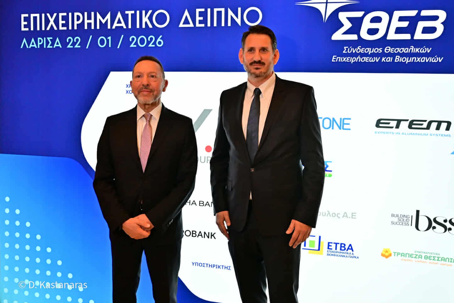 Το καθιερωμένο ετήσιο επιχειρηματικό δείπνο για τα μέλη του διοργάνωσε ο Σύνδεσμος Θεσσαλικών Επιχειρήσεων και Βιομηχανιών (ΣΘΕΒ) στο ξενοδοχείο Grecotel Larissa Imperial, με κεντρικό ομιλητή τον Διοικητή της Τράπεζας της Ελλάδος, κ. Γιάννη Στουρνάρα.