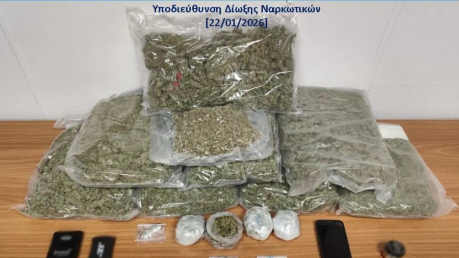 Οι Αρχές κατέσχεσαν, μεταξύ άλλων, σχεδόν εννέα κιλά ακατέργαστης κάνναβης (8.892 γραμμάρια) και δύο ζυγαριές ακριβείας, ενώ ο άνδρας κατηγορείται επίσης για πλαστογραφία πιστοποιητικών και για βία κατά υπαλλήλων και δικαστικών προσώπων.