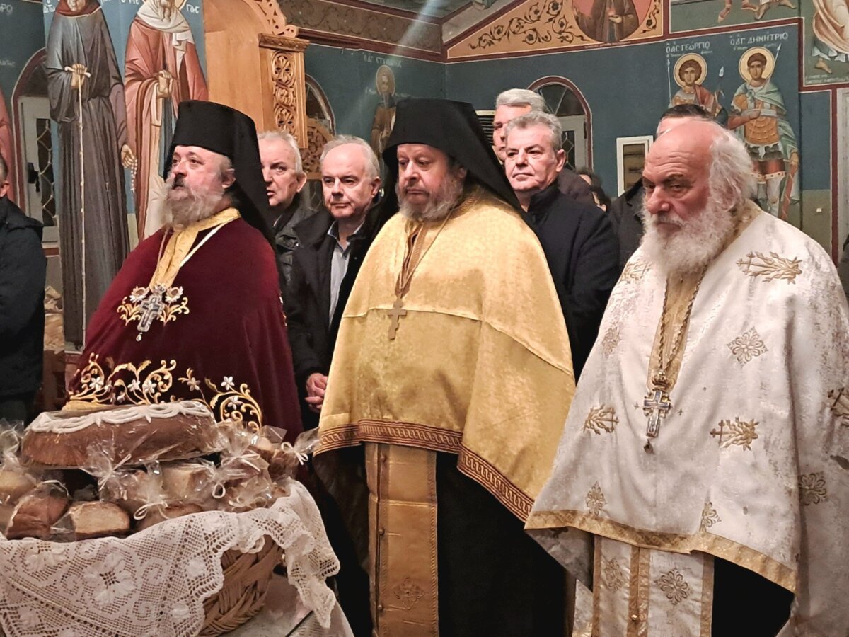Μετά το πέρας του Πανηγυρικού Εσπερινού, ο Δήμαρχος Τεμπών αντάλλαξε ευχές με τους παρευρισκόμενους πιστούς.