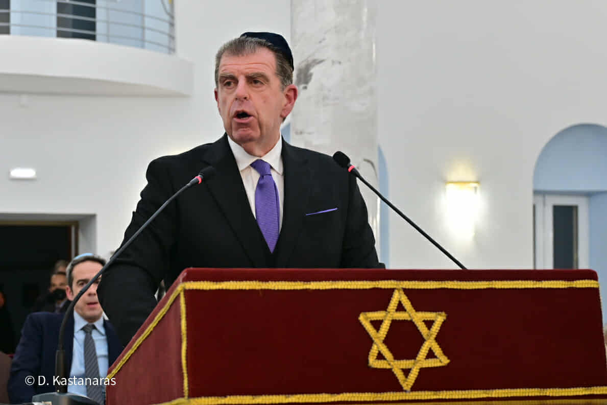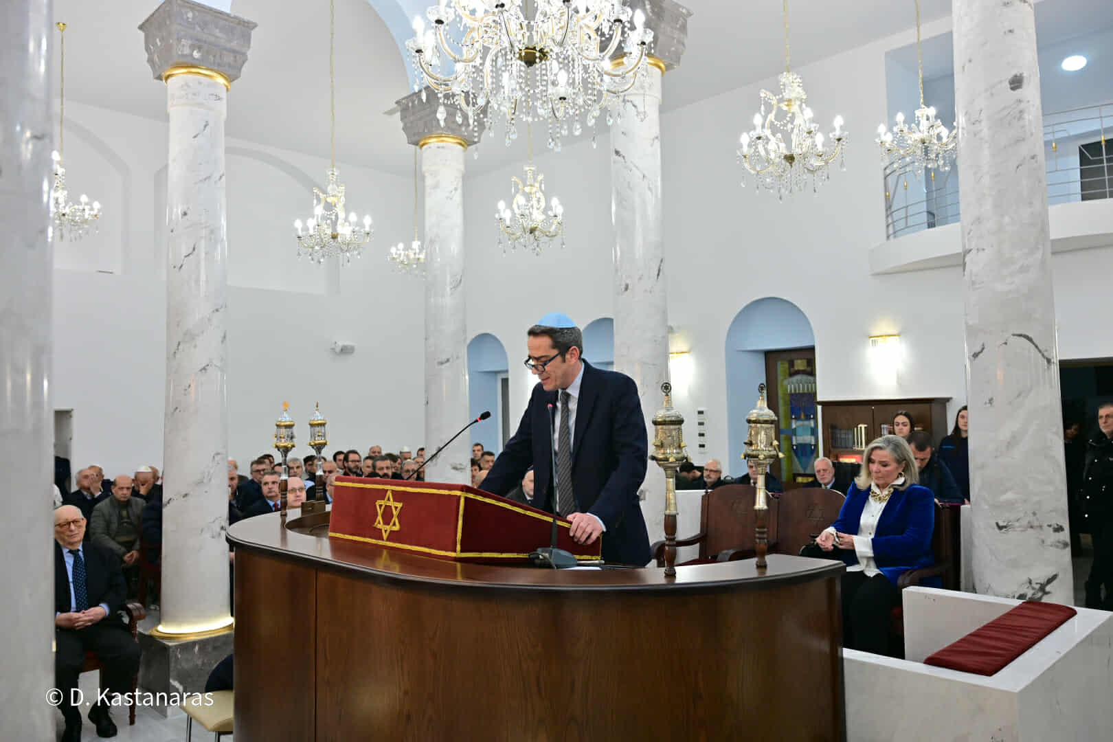 Ο Περιφερειάρχης Θεσσαλίας Δημήτρης Κουρέτας στην ομιλία του τόνισε μεταξύ άλλων ότι “με αισθήματα συγκίνησης βρίσκομαι στη Συναγωγή που ολοκληρώθηκε με χρηματοδότηση της Περιφέρειας Θεσσαλίας και εκπέμπει ακτινοβολία μνήμης για να μας καθοδηγηθεί ως φάρος εκπλήρωσης ενός διαχρονικού χρέους απέναντι στην ανθρωπότητα”.