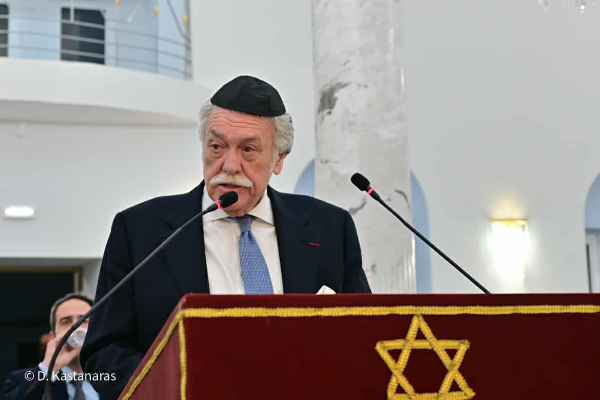 Ο πρόεδρος της Ισραηλιτικής Κοινότητας Λάρισας Μωυσής Μανουάχ στην ομιλία του εξέφρασε την έντονη ανησυχία και οργή για την έξαρση του αντισημιτισμού στη χώρα μας τα τελευταία χρόνια με βανδαλισμούς, συνθήματα και θλιβερά φαινόμενα, τονίζοντας την ευθύνη της κοινωνίας να απομονώνει τις μισαλλόδοξες φωνές.