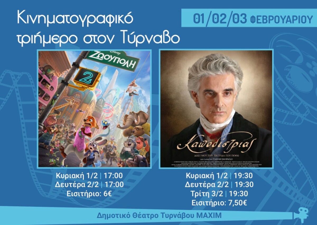 Στο κινηματογραφικό αυτό τριήμερο θα προβληθούν οι ταινίες «Ζωούπολη 2», μια αγαπημένη επιλογή για μικρούς και μεγάλους, καθώς και ο «Καποδίστριας», μια σημαντική ιστορική παραγωγή που αναδεικνύει στιγμές της νεότερης ελληνικής ιστορίας, προσφέροντας επιλογές για όλα τα γούστα.