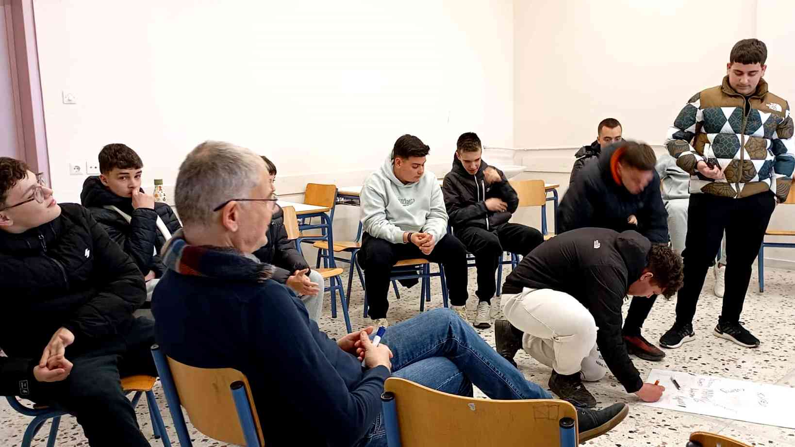 Στο EΠΑΛ Τυρνάβου πραγματοποιήθηκε βιωματική δράση με θέμα τους εθισμούς, κατά την οποία οι μαθητές συμμετείχαν ενεργά σε ομαδικές δραστηριότητες και ασκήσεις. Μέσα από τη συζήτηση και τα βιωματικά παραδείγματα, δόθηκε έμφαση στην κατανόηση των παραγόντων που οδηγούν σε εξαρτητικές συμπεριφορές, καθώς και στη σημασία της πρόληψης, της υπεύθυνης στάσης και της ενίσχυσης δεξιοτήτων ζωής, όπως η επικοινωνία, η αυτογνωσία και η διαχείριση συναισθημάτων.