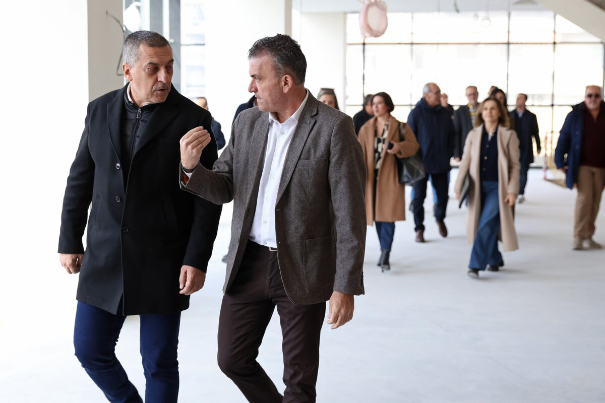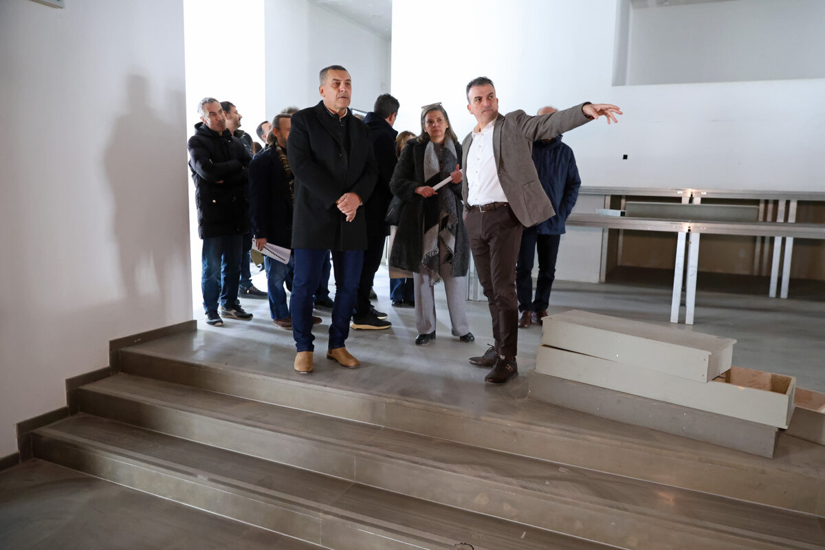 Κατά την ξενάγηση που πραγματοποίησε η επιβλέπουσα μηχανικός του Δήμου κα Σοφία Ρωμανάσου, οι κ.κ. Κουρέτας, Μαμάκος ενημερώθηκαν ότι αυτή τη στιγμή πραγματοποιούνται εργασίες στην αίθουσα των θεατών, που είναι πολύ κομβικές για το κτίριο, καθώς μετά την ολοκλήρωσή τους θα επιτραπεί να προχωρήσουνε τα συνεργία στις λοιπές εργασίες. Οι τρέχουσες ηλεκτρομηχανολογικές εργασίες αφορούν στο θόλο της αίθουσας των θεατών, ο οποίος θα καλυφθεί με ξύλινη επένδυση με την αποπεράτωσή τους. Το επόμενο στάδιο των εργασιών αφορά στην τοποθέτηση του δαπέδου της αίθουσας των θεατών και των καθισμάτων, καθώς και του δαπέδου της σκηνής. Η κα Ρωμανάσου διευκρίνισε ότι έχουν από πέρυσι ολοκληρωθεί οι εργασίες που αφορούσαν στο αναβατόριο της σκηνής, τον μηχανισμό του περιστρεφόμενου τμήματος αυτής, οι οποίοι έχουν ελεγχθεί ως προς τη λειτουργία τους και πιστοποιηθεί. Μετά την ολοκλήρωση των ξύλινων επενδύσεων στην αίθουσα των θεατών και στη σκηνή, θα ακολουθήσουν εργασίες τελικών επενδύσεων στα δύο φουαγιέ, καθώς και λοιπές μικροεργασίες τελικού σταδίου.
