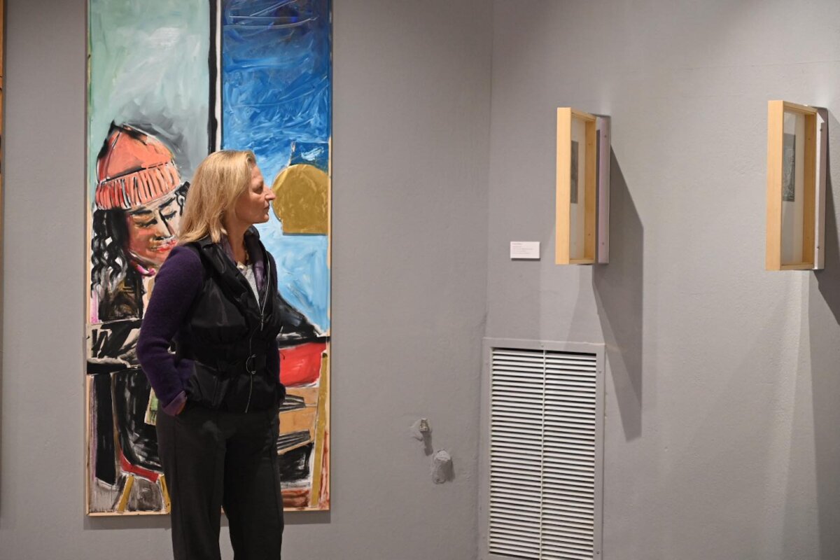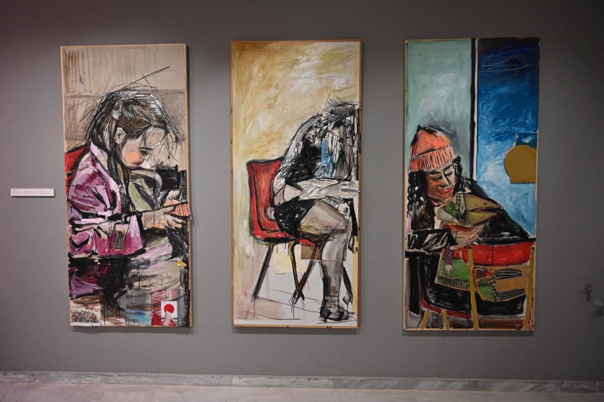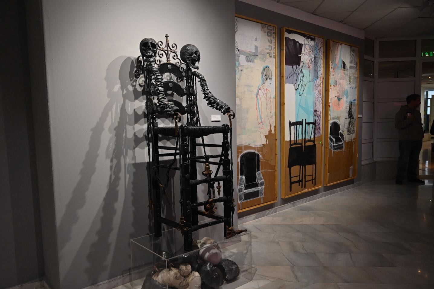 Η Ελένη Καλαμπαλίκη εξέφρασε την ικανοποίησή της για τη συμμετοχή της στην έκθεση, επισημαίνοντας τη σημασία της συνεργασίας μεταξύ των καλλιτεχνών και της στήριξης της Πινακοθήκης. Αναφέρθηκε στη δική της ζωγραφική ενότητα, όπου η καρέκλα λειτουργεί ως σημείο αναστοχασμού, μνήμης και ανασυγκρότησης της ανθρώπινης παρουσίας, κάτι που αποτυπώνεται και στις μεγάλες διαστάσεις των έργων της.