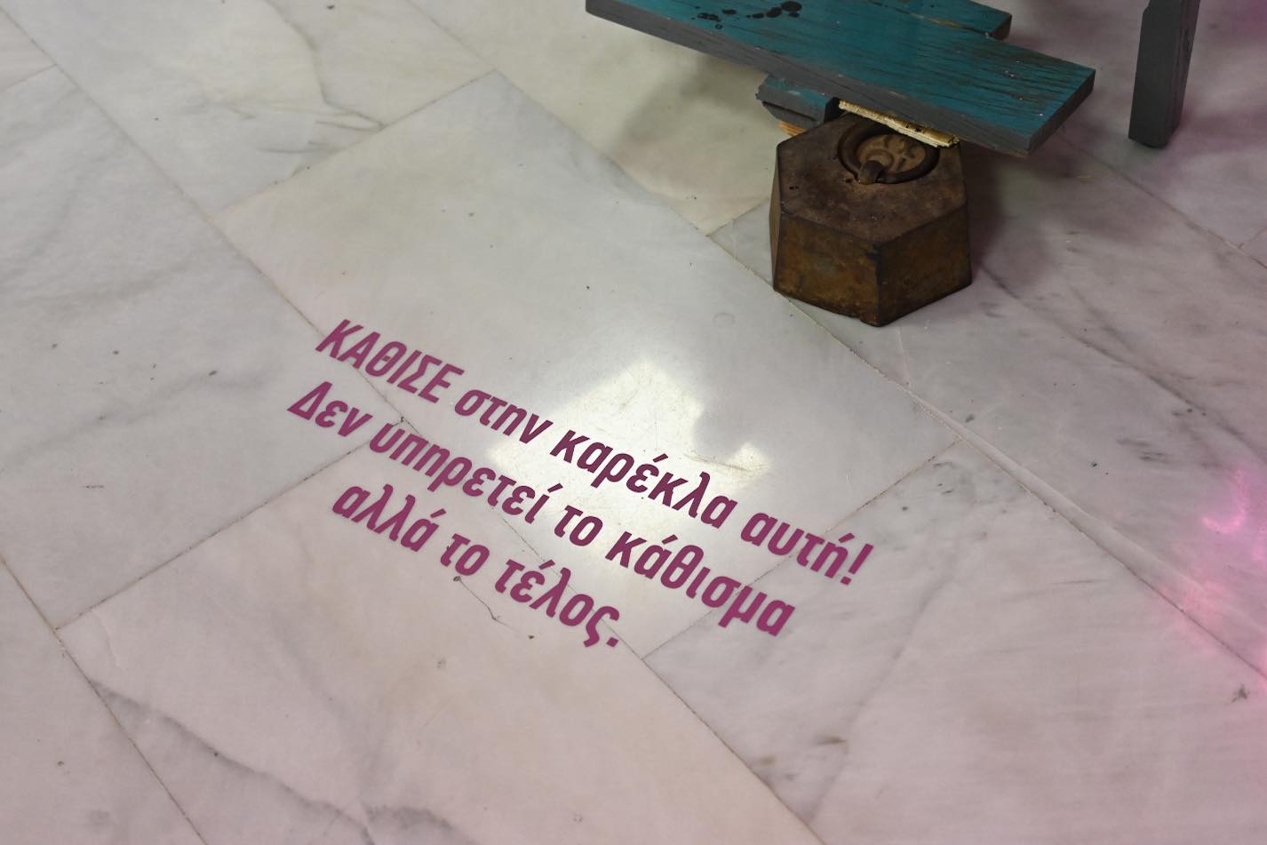 Η επιμελήτρια της έκθεσης, Νικολέτα Τζάνη, εξήγησε ότι η επιμελητική πρόταση διερευνά τη σχέση του καθίσματος με την εικαστική έννοια του memento mori, χωρίς να εστιάζει στον θάνατο ως τελικό γεγονός, αλλά στην αργή και ανεπαίσθητη παρουσία του μέσα στην καθημερινότητα. Όπως ανέφερε, οι τρεις καλλιτέχνες, μέσα από διαφορετικές τεχνικές και εικαστικές γλώσσες, μετασχημάτισαν το καθημερινό αντικείμενο σε πεδίο νοήματος, μνήμης και υπαρξιακής εμβάθυνσης, δημιουργώντας έργα που υπερβαίνουν την υλικότητα και ενεργοποιούν τον θεατή.