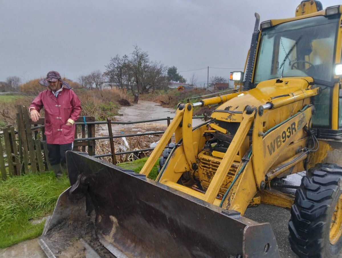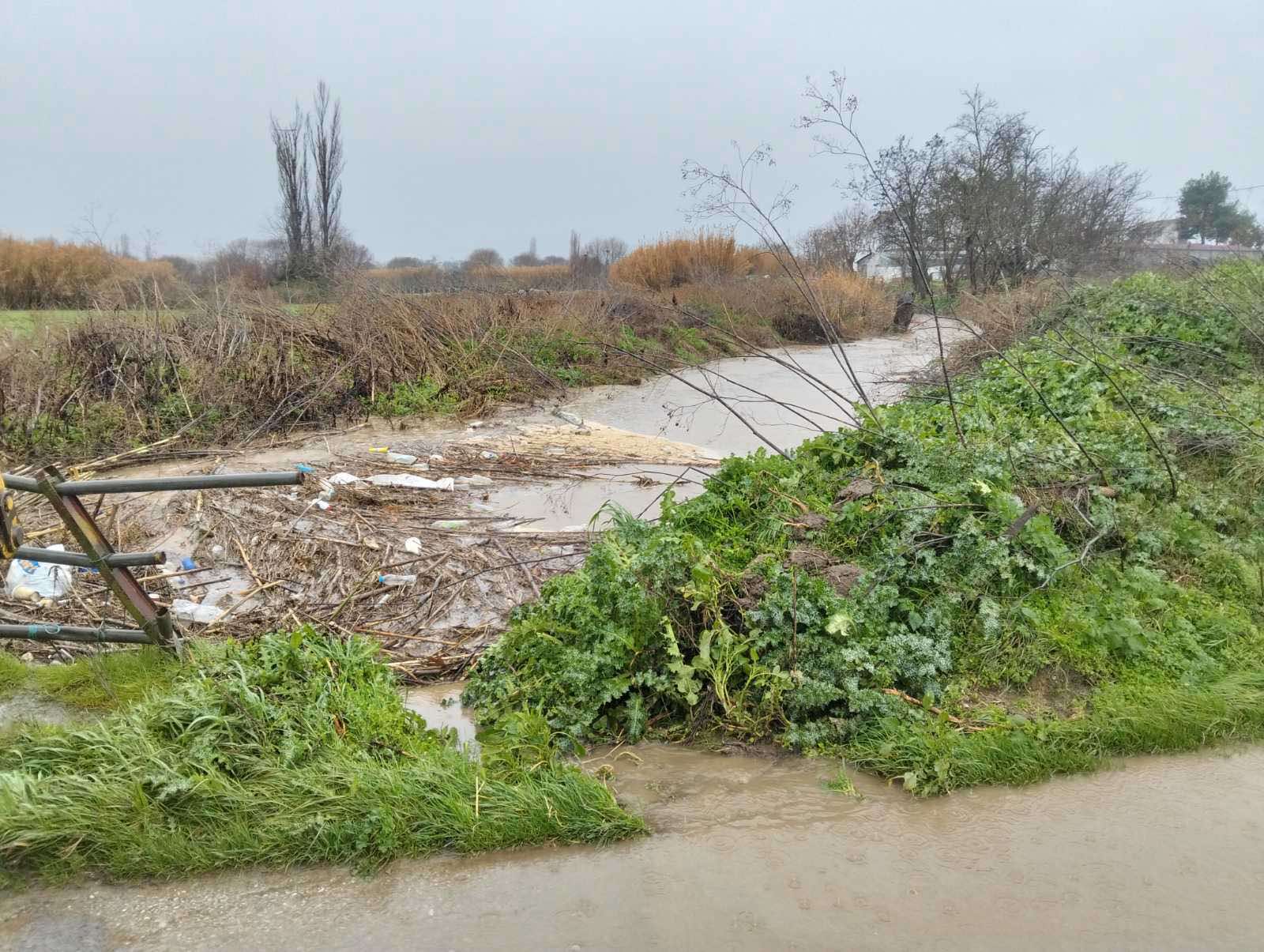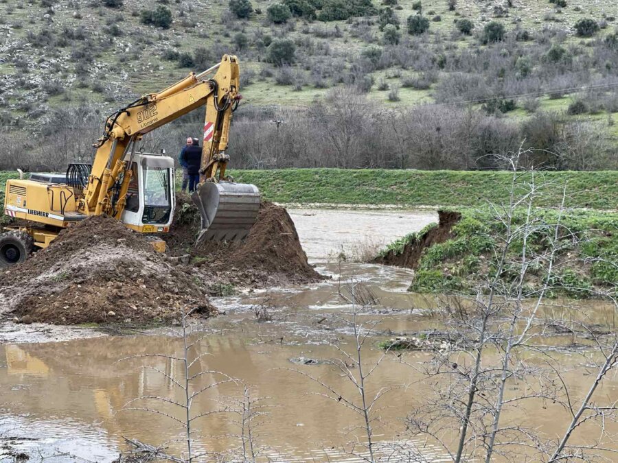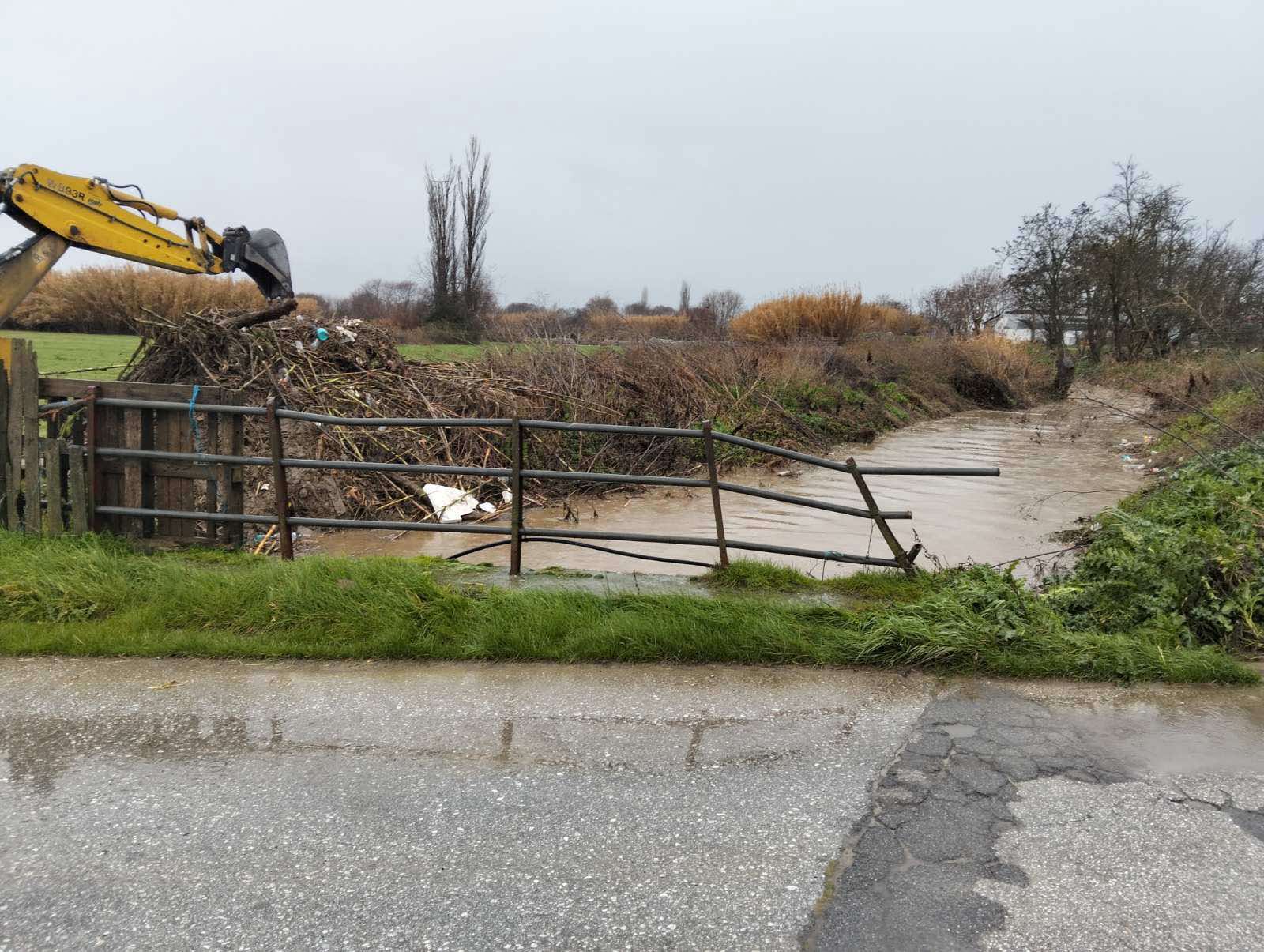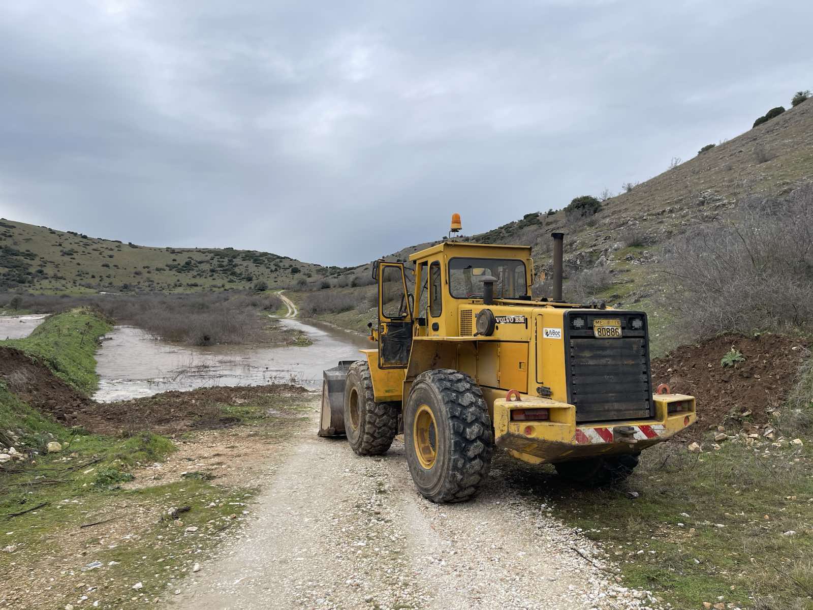 Στο ακριβές σημείο διακοπής του έργου τα νερά κατευθύνθηκαν προς τον παρακείμενο αγροτικό δρόμο, ο οποίος χρησιμοποιείται καθημερινά από κτηνοτρόφους για τη μετάβασή τους στα μαντριά, με αποτέλεσμα να αποκοπεί η πρόσβαση.