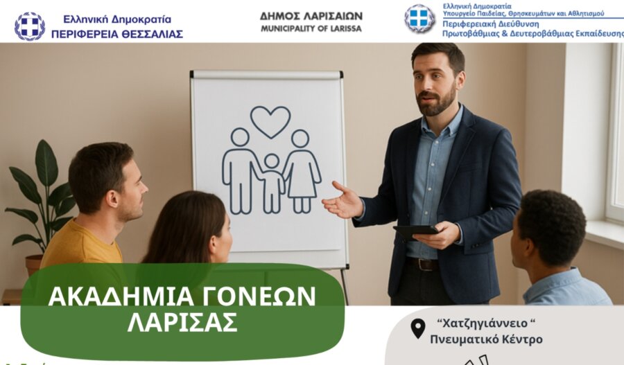 Η Περιφερειακή Διεύθυνση Εκπαίδευσης Θεσσαλίας, σε συνεργασία με την Αντιπεριφέρεια Παιδείας και Ισότητας και τον Δήμο Λαρισαίων, ανακοινώνει τη λειτουργία του 2ου κύκλου της Ακαδημίας Γονέων για το σχολικό έτος 2025–2026: