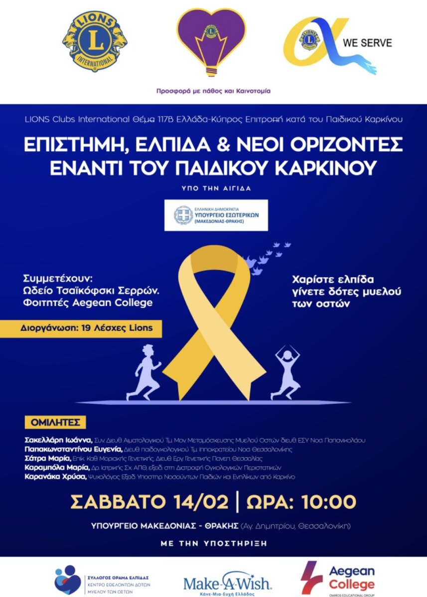 Είκοσι Λέσχες Lions από τη Μακεδονία, τη Θράκη, την Ήπειρο, τη Θεσσαλία και τα Ιόνια Νησιά ενώνουν τις δυνάμεις τους, στηρίζοντας τα Παιδοογκολογικά μας Νοσοκομεία, στο πλαίσιο των κοινών δράσεων της Επιτροπής κατά του Παιδικού Καρκίνου των Lions Clubs International D117B – Β’ Ελλάδα & Κύπρος.